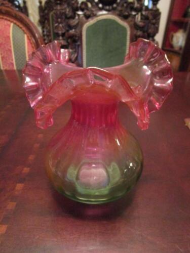 MURANO GLASS VASE RUFFLED BORDERS TRICOLOR AND PONTIL, 7 1/2 X 6", ?very good condition [GL14]