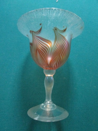 "Vandermark" MERRITT Art glass Compote - Footed Bowl - feather design PICK1