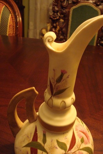 ROBERT HANKE PORCELAIN Bohemia Ewer Hand Decorated with flowers - c1900s, 9 1/4" tall, no chips, some light surface scratches and age stains commensurate with age. In the inside there is a hairline that is not noted from the outside.