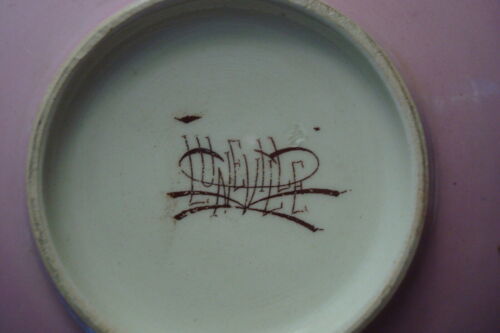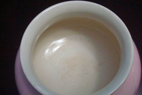French Antique Vintage Luneville Keller Guerin ceramic Vase (c.1889-1915) pink decorated with flowers, 5 1.2" tall by 8" diam max, very good condition, light surface scratches and some age stains inside commensurate with age
