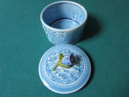 W. Rice Japan turquoise covered trinket, rose on top, round [88B]