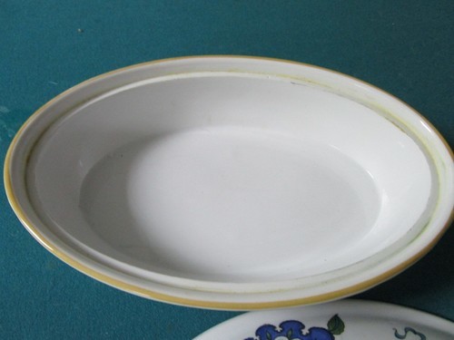 Royal Worcester England-Palmyra Bride of the Desert Pattern- covered tureen set of 2. Flame proof procelain made in England , oven to table ware dishwasher proof, 1970 Royal Worcester. The smallest one measures 3 1/4 inches tall by 7 1/2 inches long and the largest one measures 3 1/4 inches tall by 11 1/2 inches long. Both are in very good condition, no chips or hailines, minimal scratching due to use, almost invisible. [TUREENGREYBSKT-RM4]