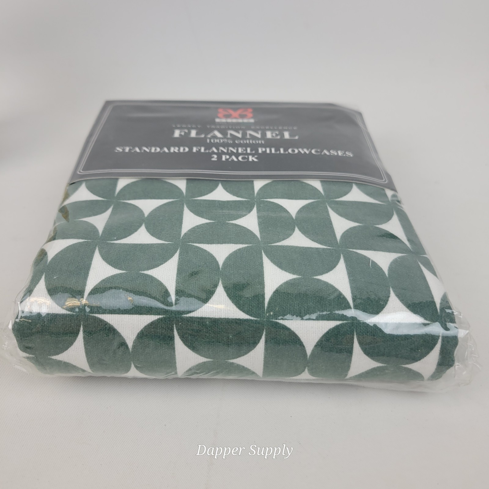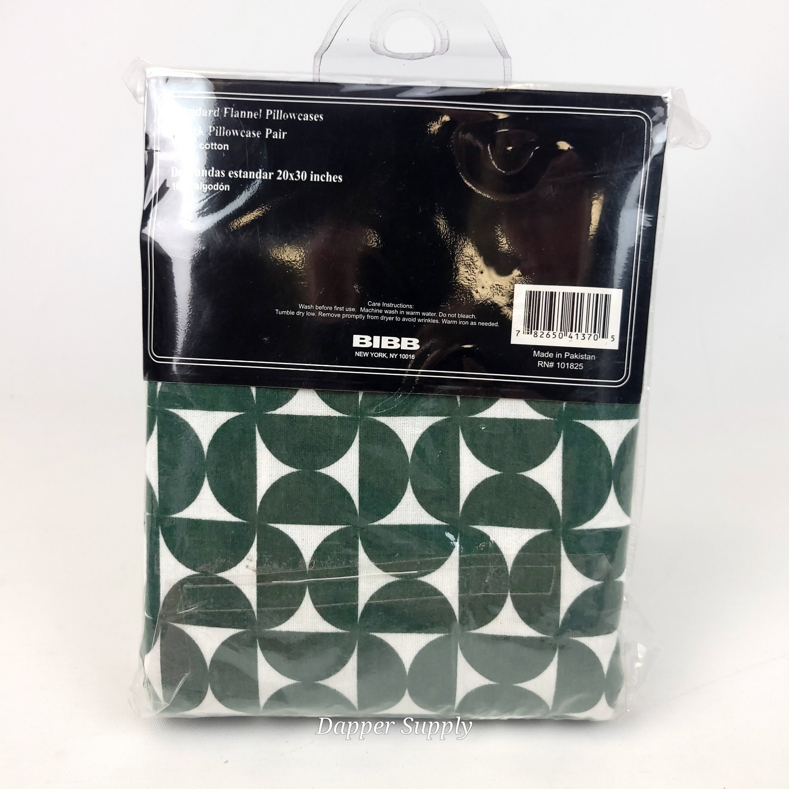 BIBB Pillowcases 2 Pack Green White Flannel Mid Century Modern Geometric New. Condition is New with tags. Shipped with USPS Ground Advantage.