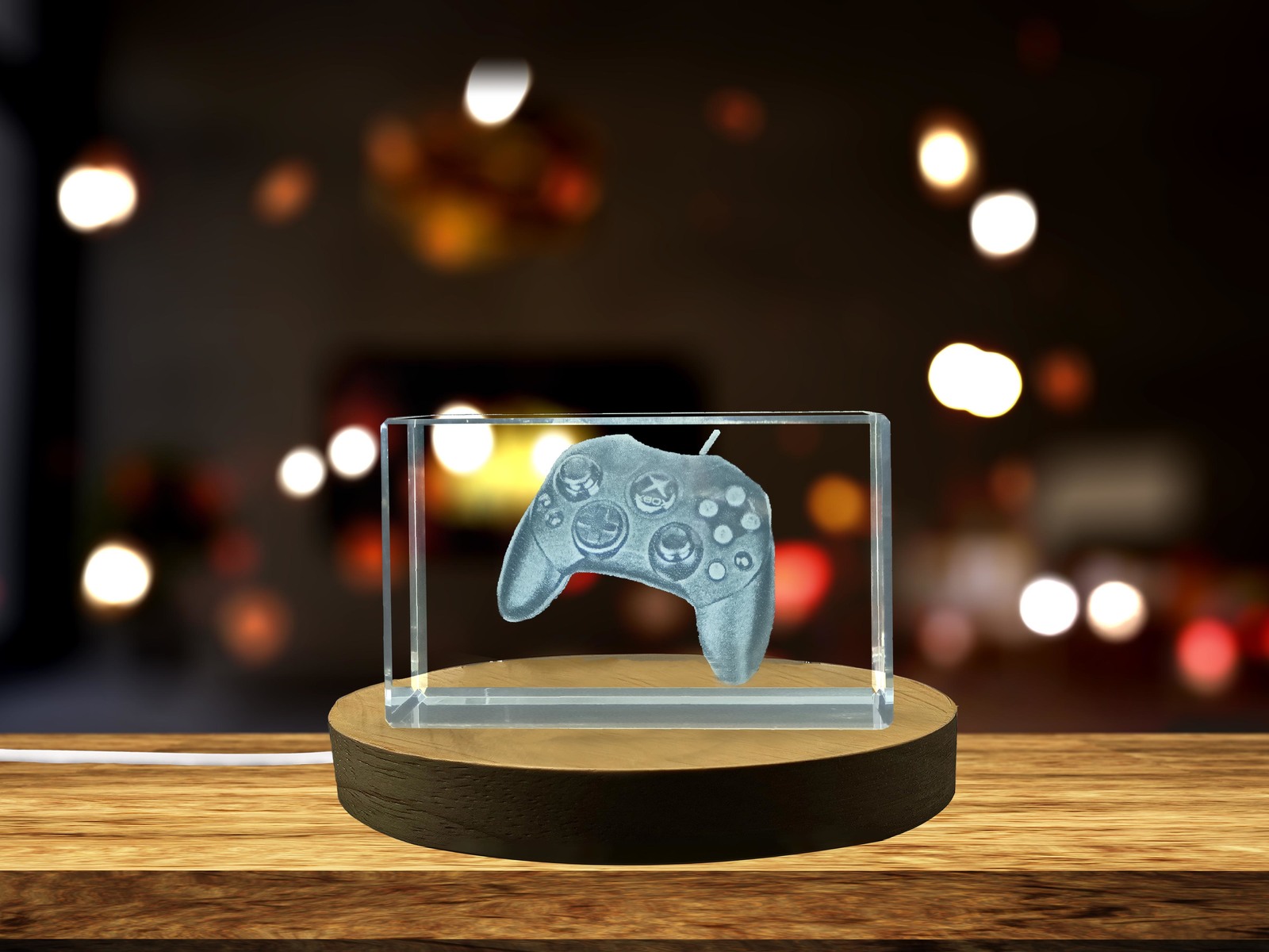 LED Base included | Retro Gaming: 3D Engraved Crystal Game Controller 2002