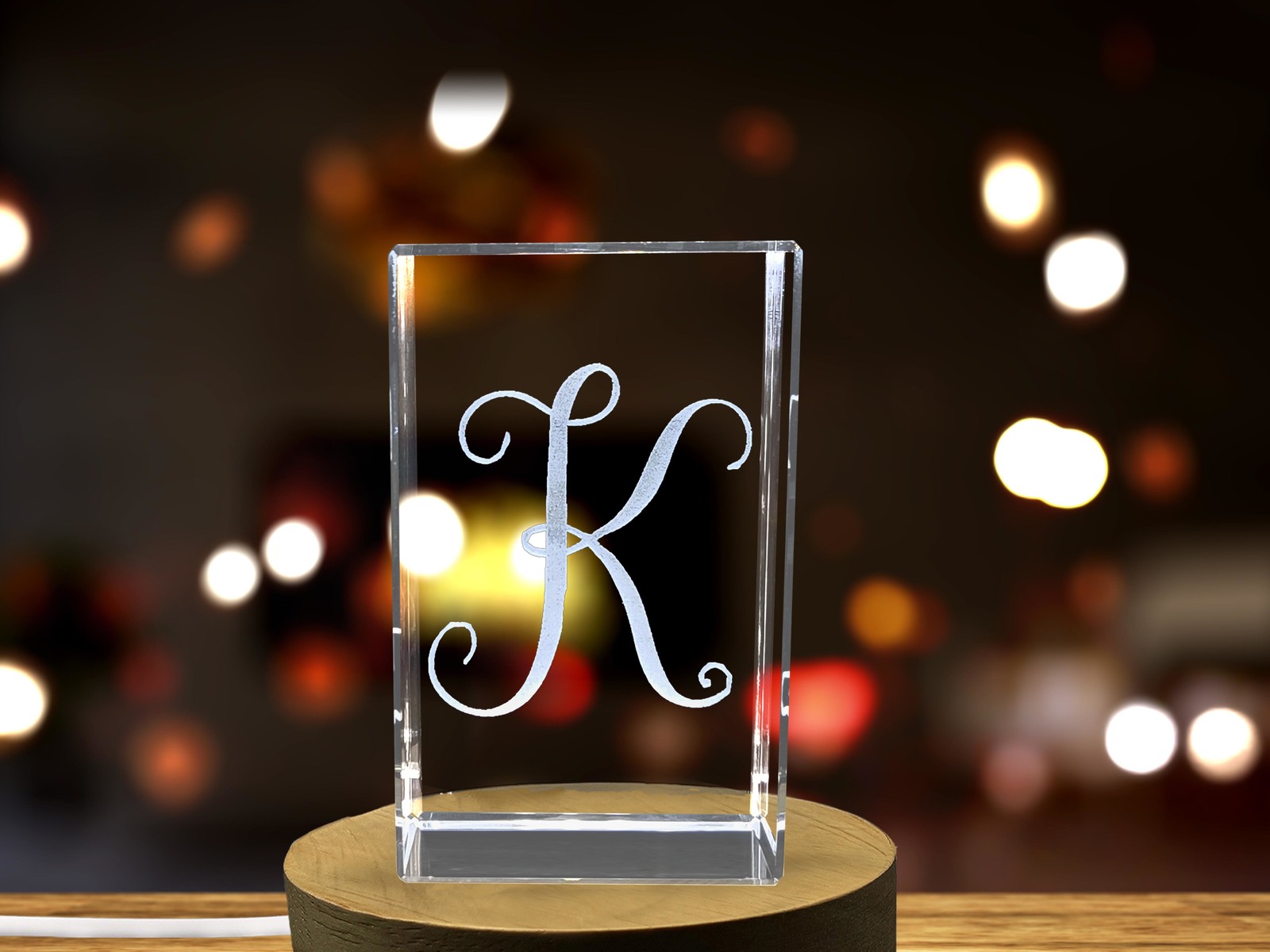 LED Base included | Unique Personalized Crystal Gift Starting with Alphabet K