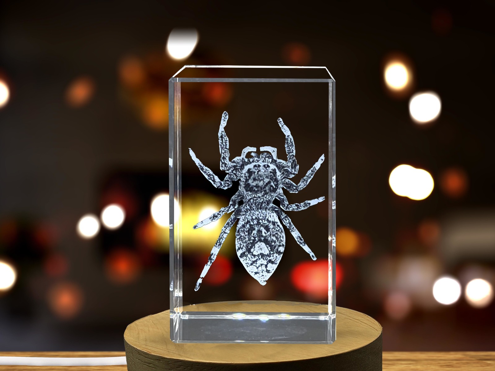 LED Base included | Beautiful 3D Engraved Crystal with Jumping Spider Design