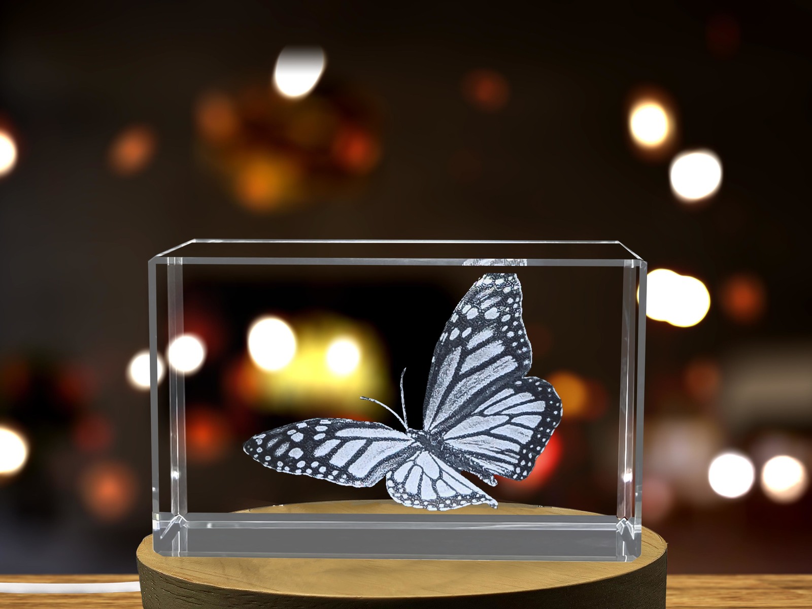 LED Base included | Monarch Butterfly Carved in Gorgeous 3D on Crystal