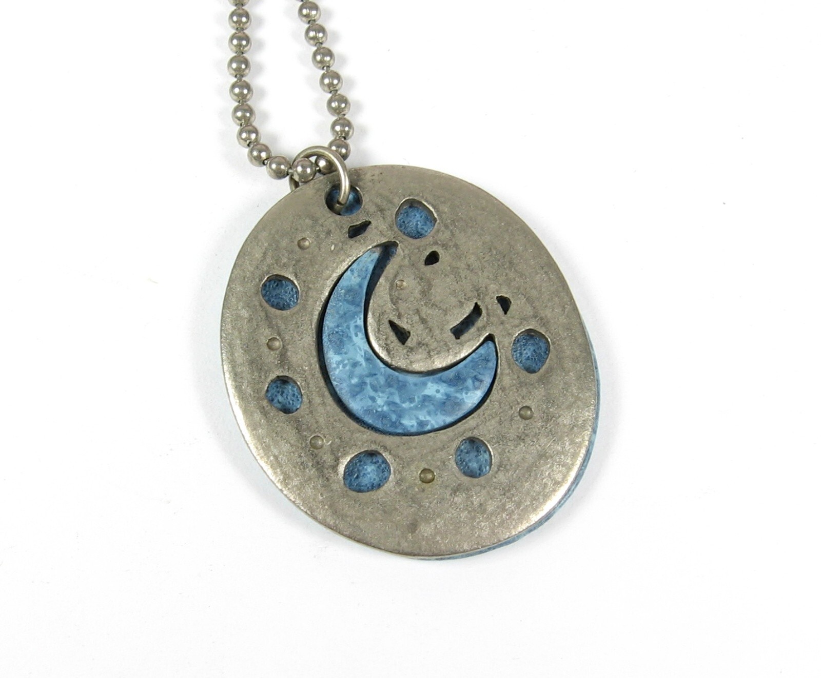 Blue Moon Pendant Vintage Necklace Relief and similar items