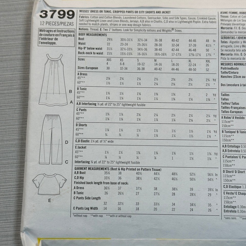 Misses/Women's Dress, Tunic, Cropped Pants, City Shorts, and Jacket Sewing Pattern