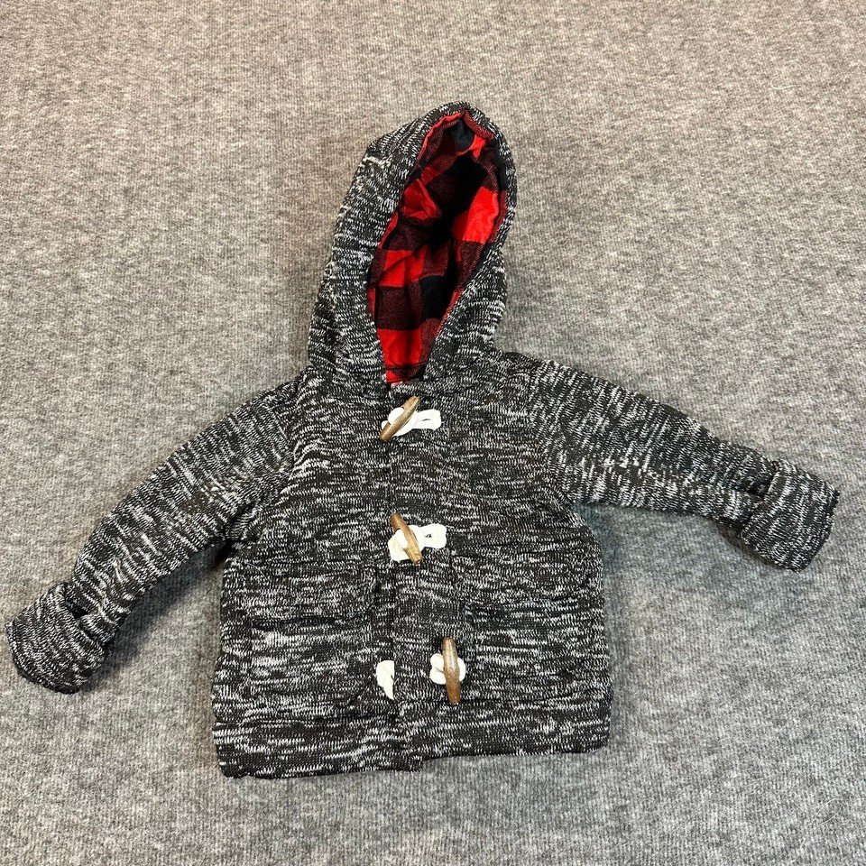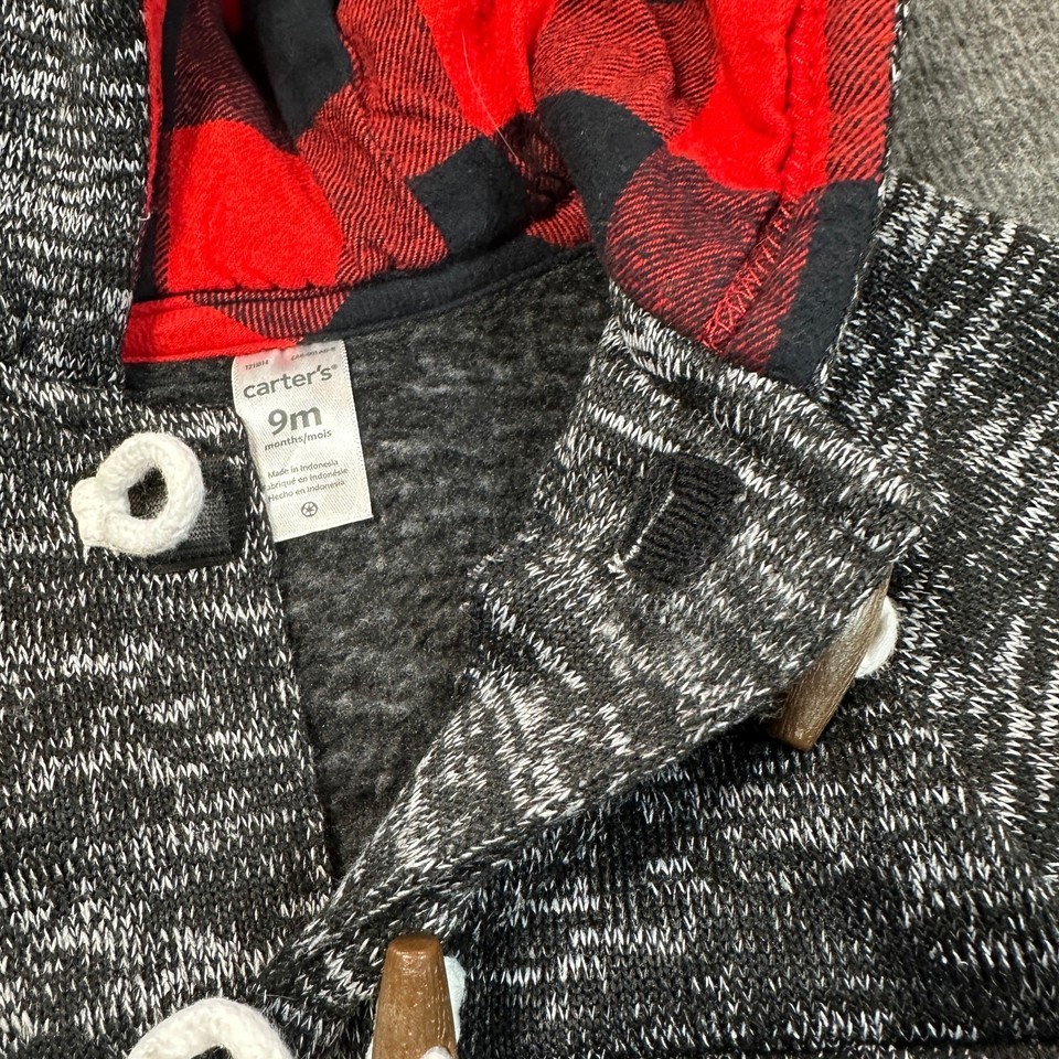 Carters Jacket Boys 9 Months Grey Toggle Button Hoodie Red Black Buffalo Plaid