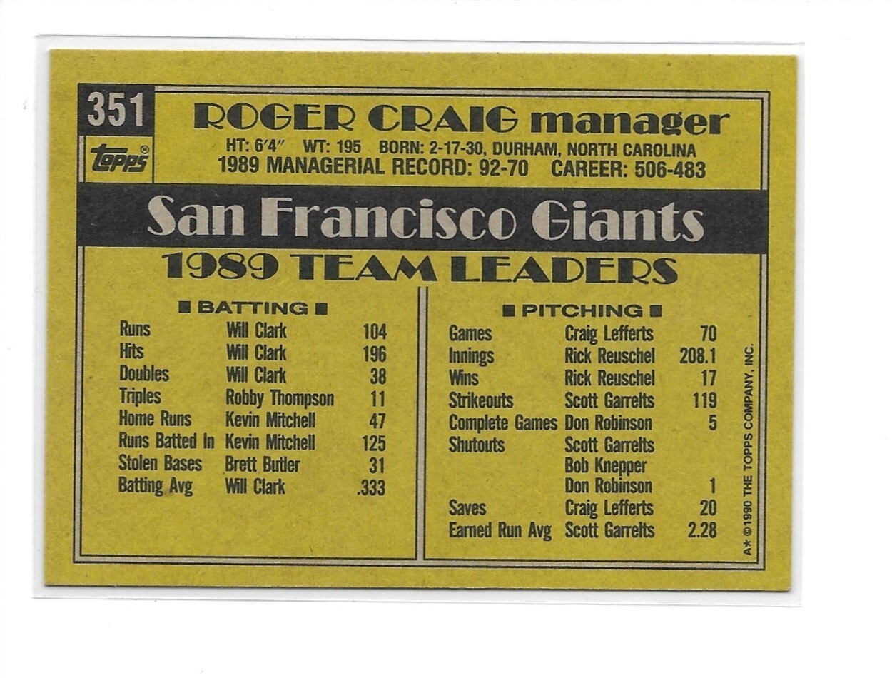 Roger Craig, #351, 1990 Topps, Giants MGR and 50 similar items