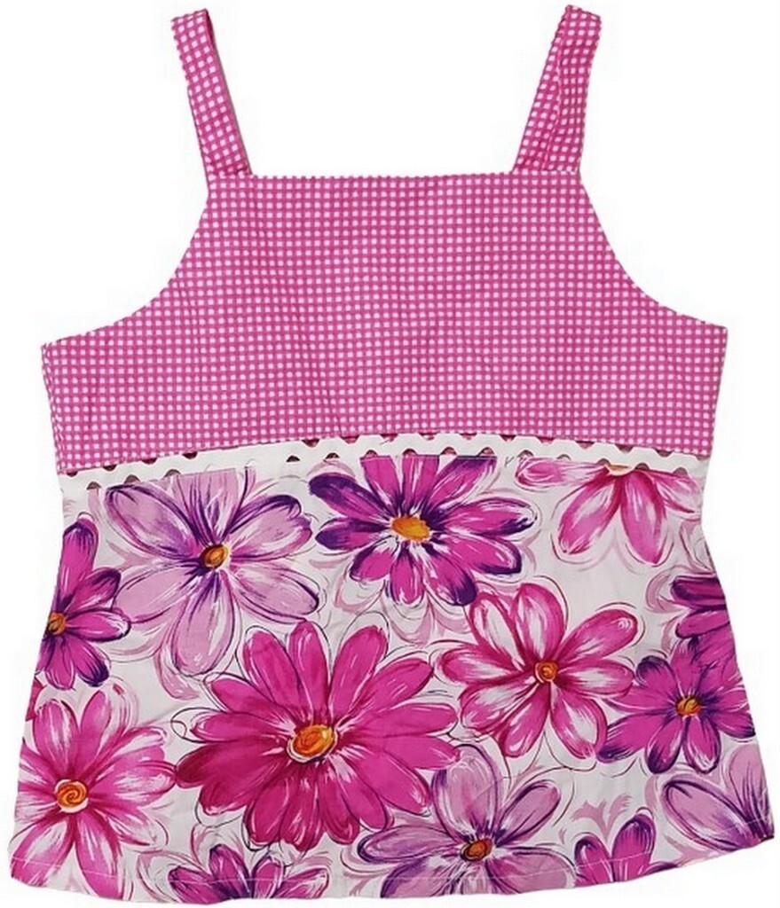 Sweet Potatoes Big Girl Floral Checkered Tank Top (L/10-12 yrs) Made in the USA