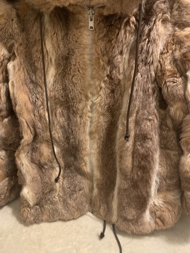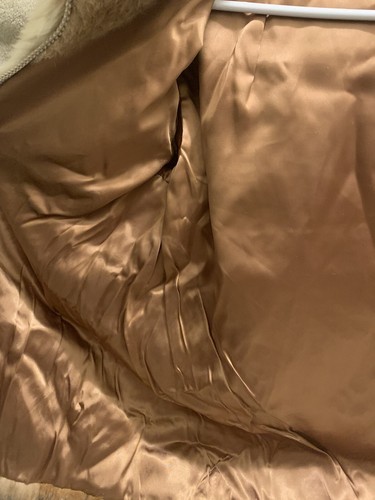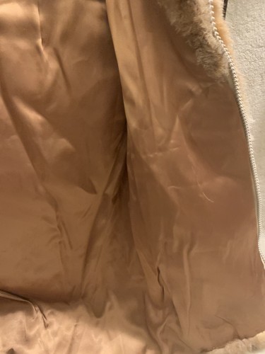 Hood. Lining coming unstitched at the bottom in places.
