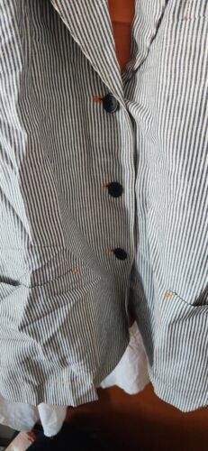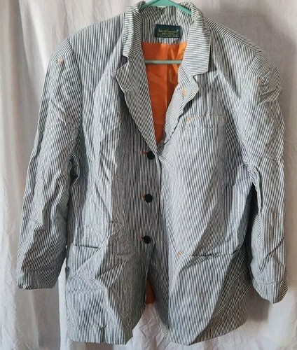 Good used jacket. Harve Benard. No size tag noticed. 23 inches pit to pit. Sleeve is 22 inches. Nice stripe design.