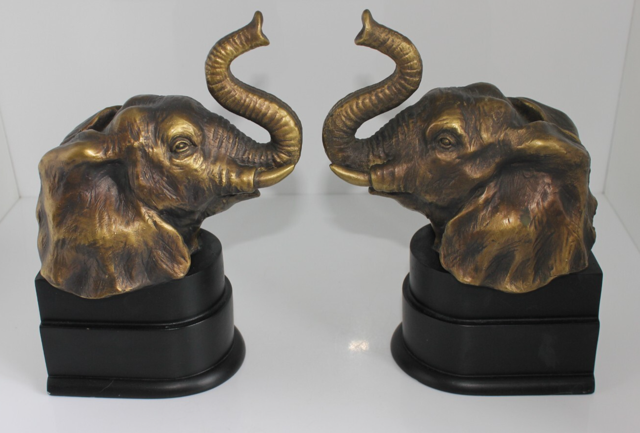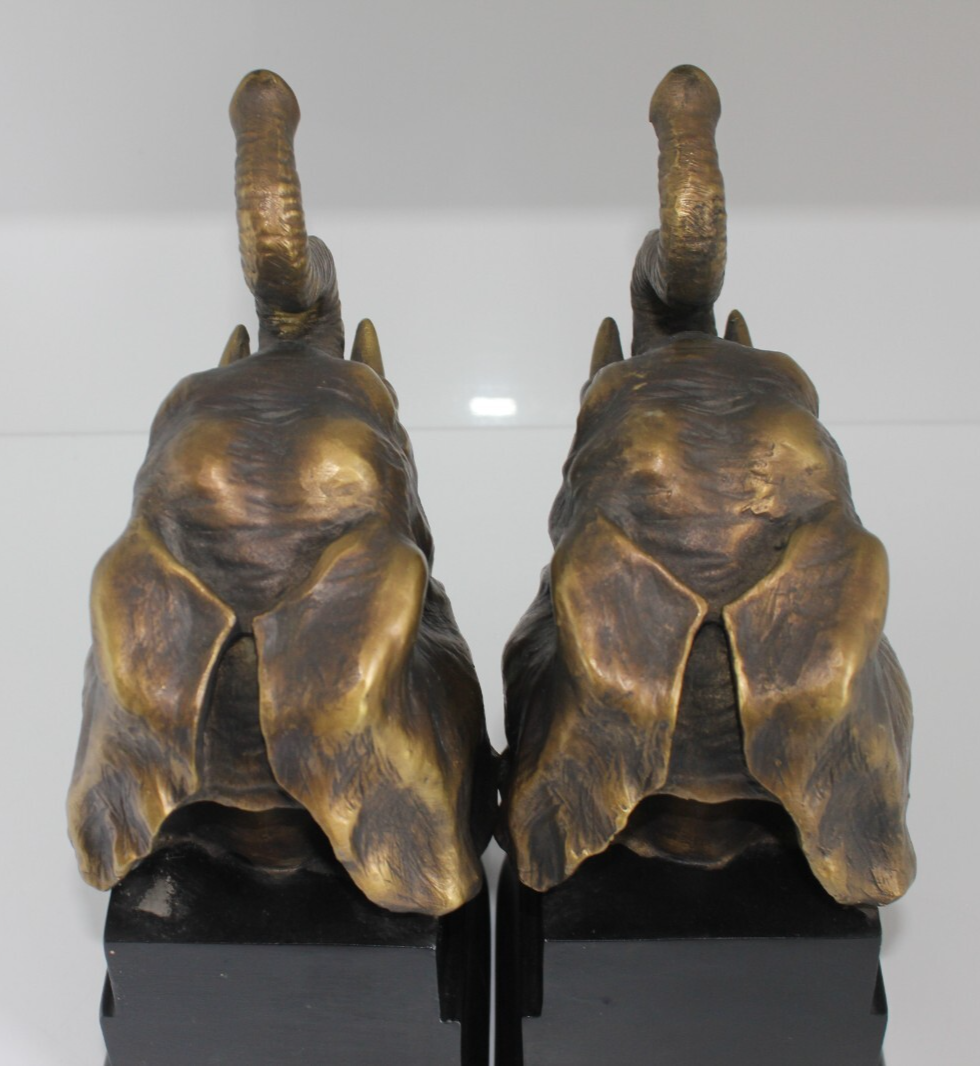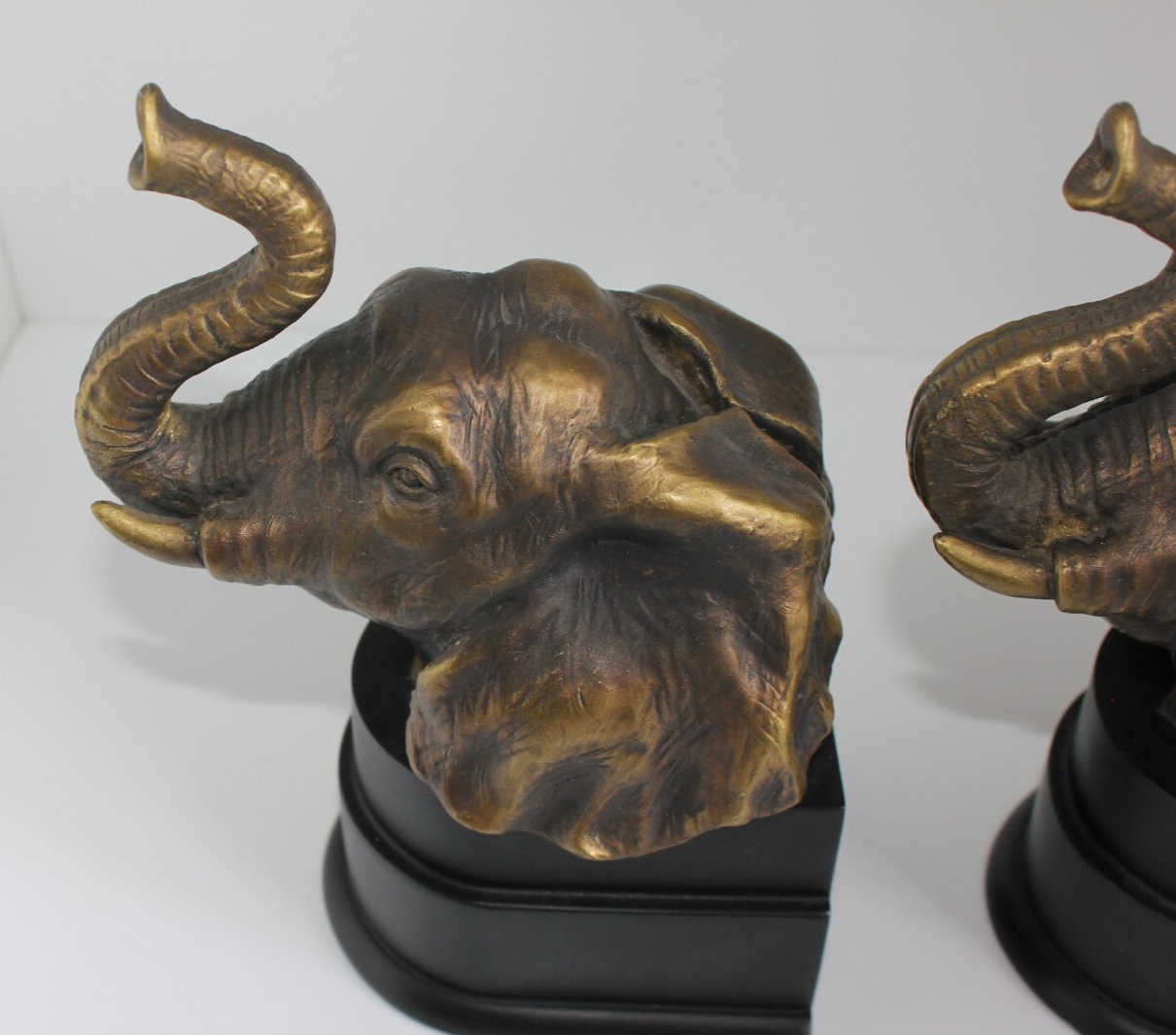 Bronze Colored Heavy Cast Resin Elephant Head Animal Book Ends 2 Pcs