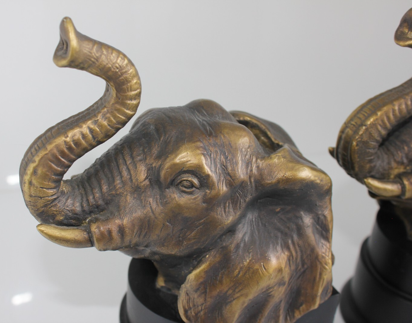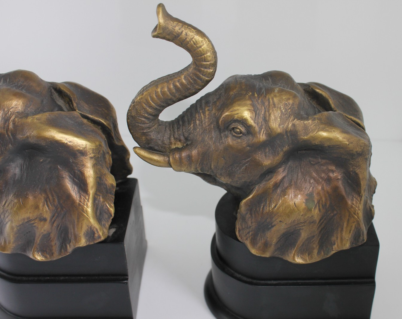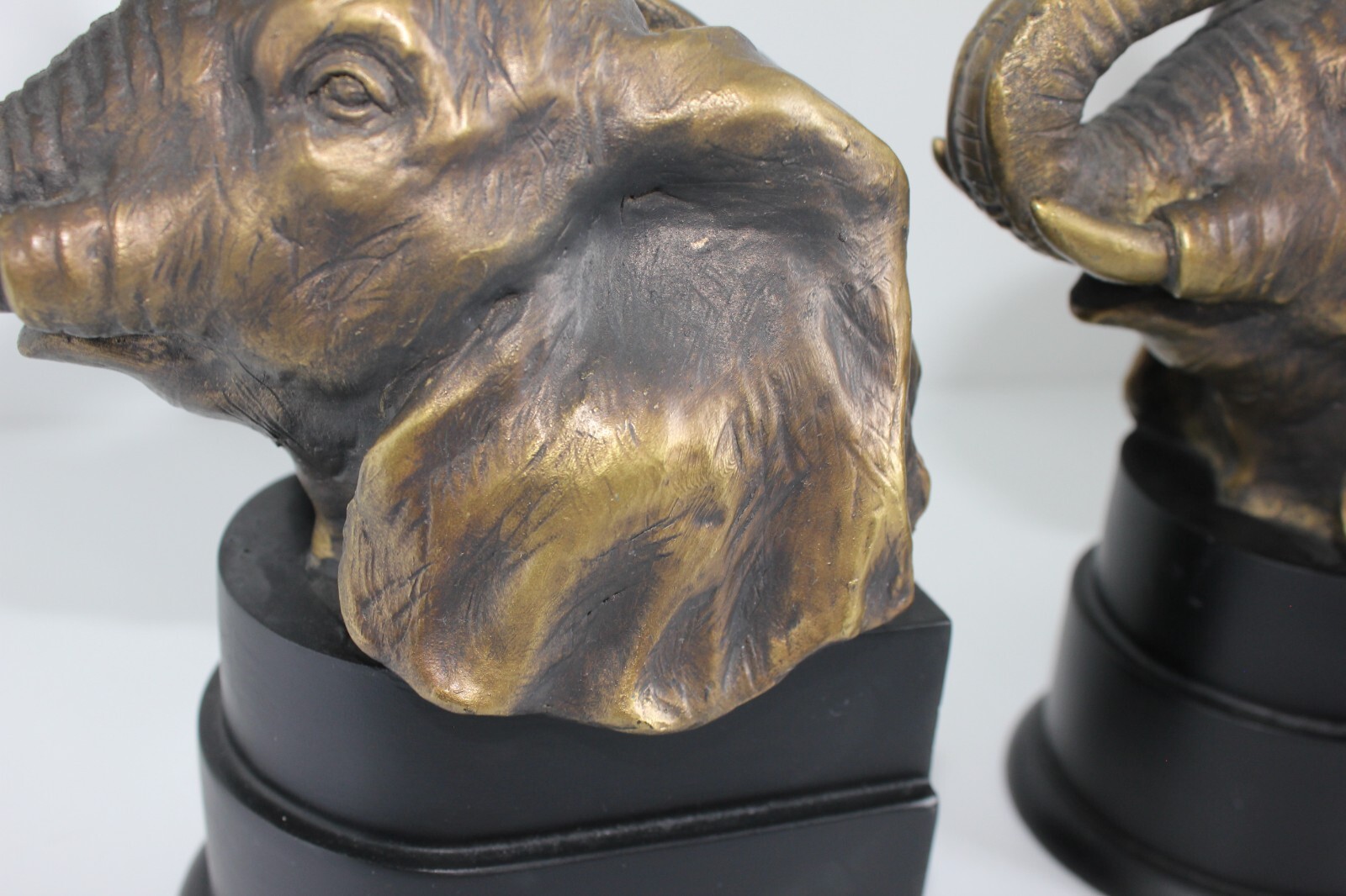 Bronze Colored Heavy Cast Resin Elephant Head Animal Book Ends 2 Pcs