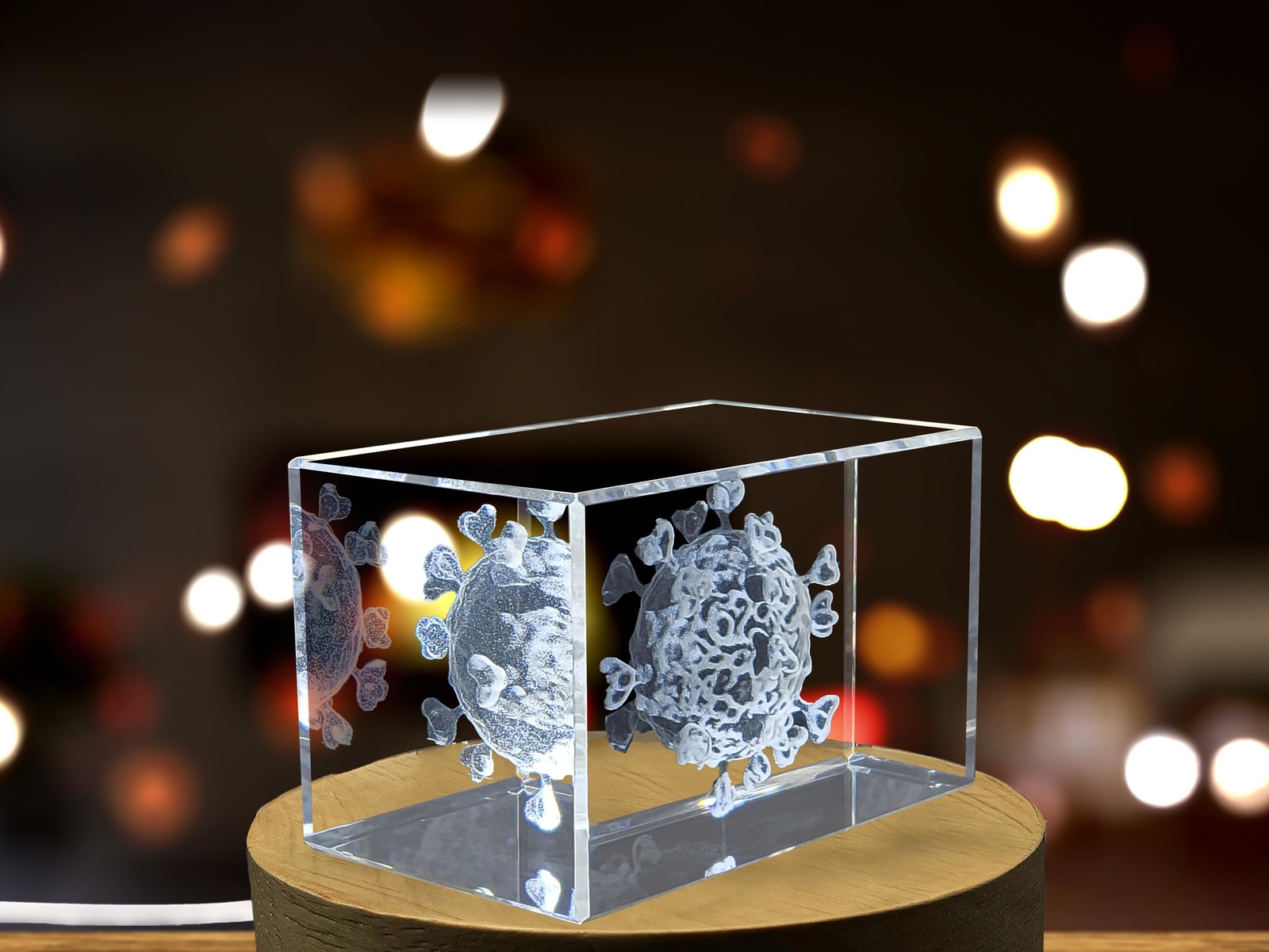 LED Base included | Historical Pathogen: 3D Engraved Crystal Smallpox Germ
