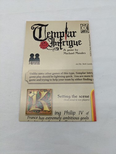 Templar Intrigue TMG Board Game. Combined Shipping (for USA Customers Only)