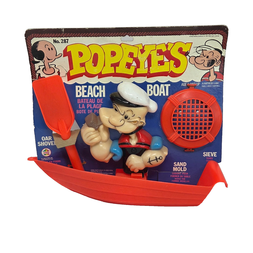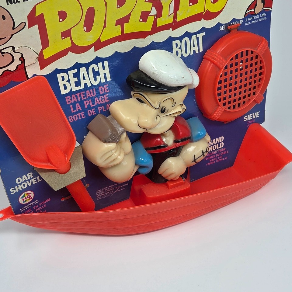VINTAGE 1980 POPEYE'S BEACH BOAT TOY W/ SAND MOLD & OAR NEW ON ORIGINAL CARD