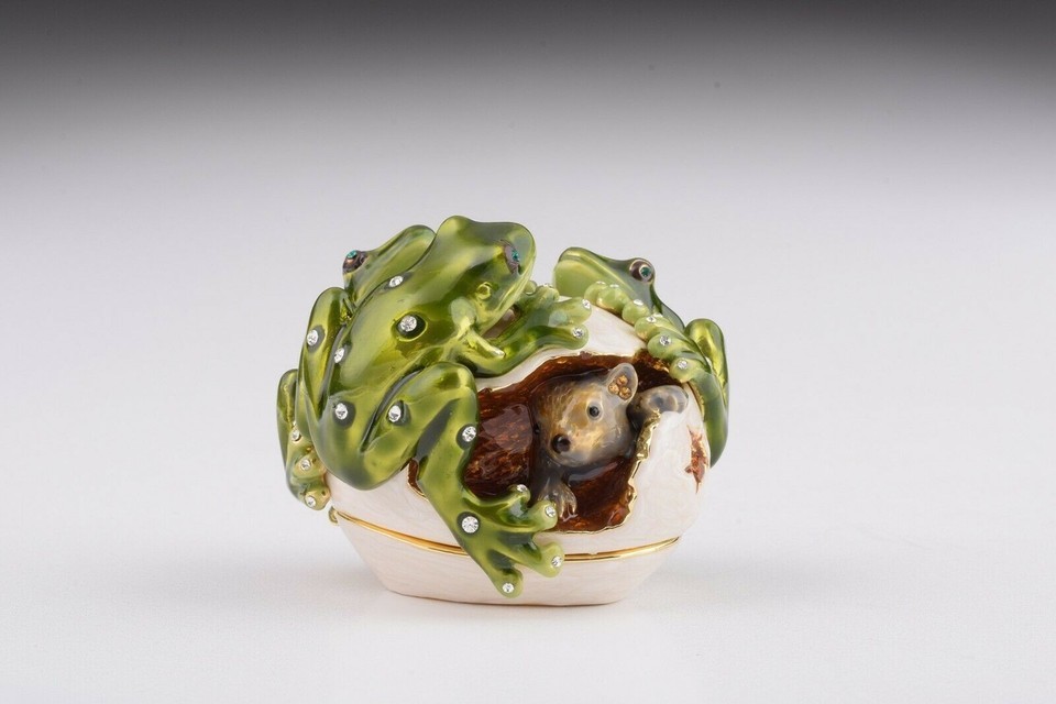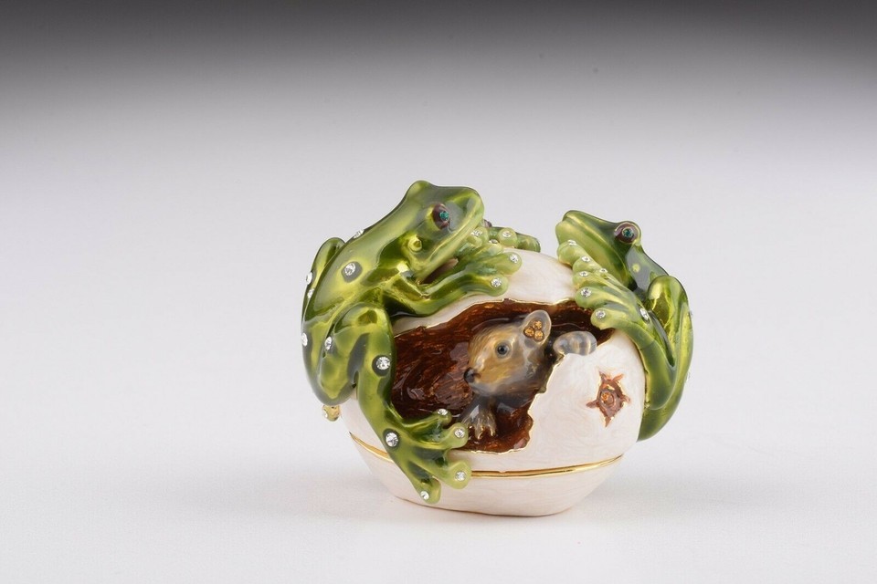 Frog and squirrel trinket box hand made by Keren Kopal & Austrian crystals