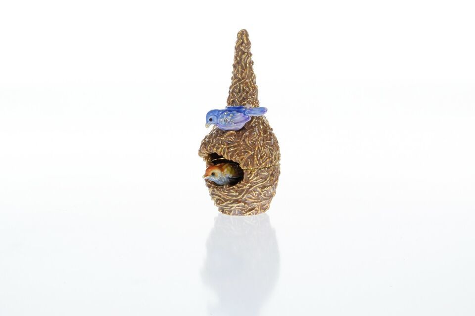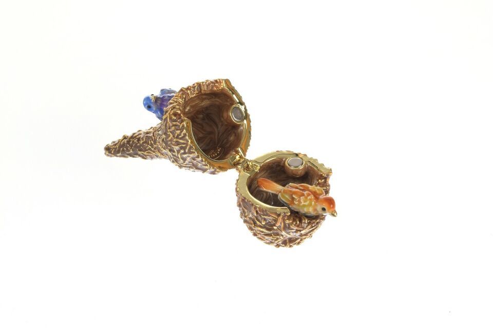 Brown Bird nest Trinket Box Hand made by Keren Kopal with Austrian Crystals