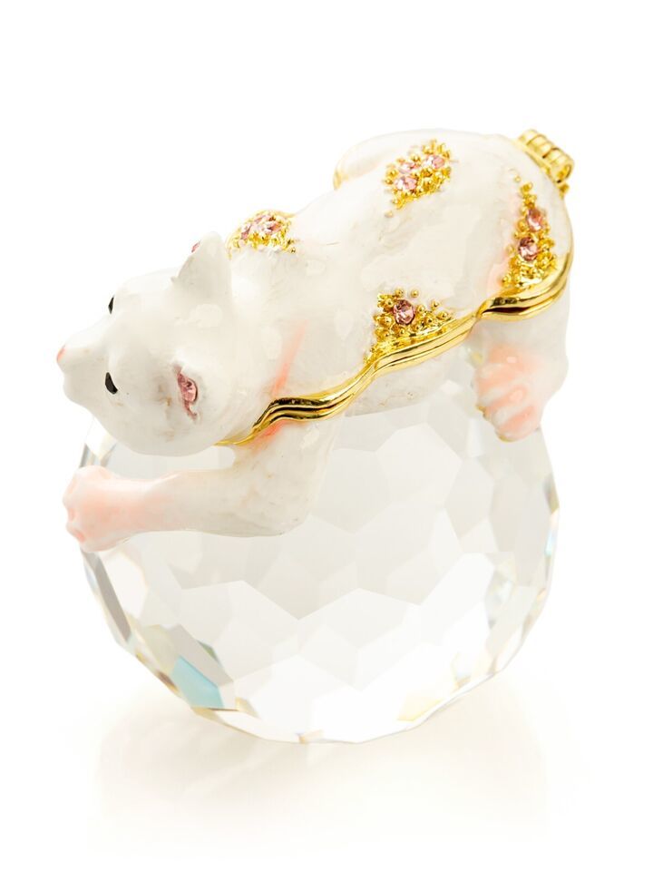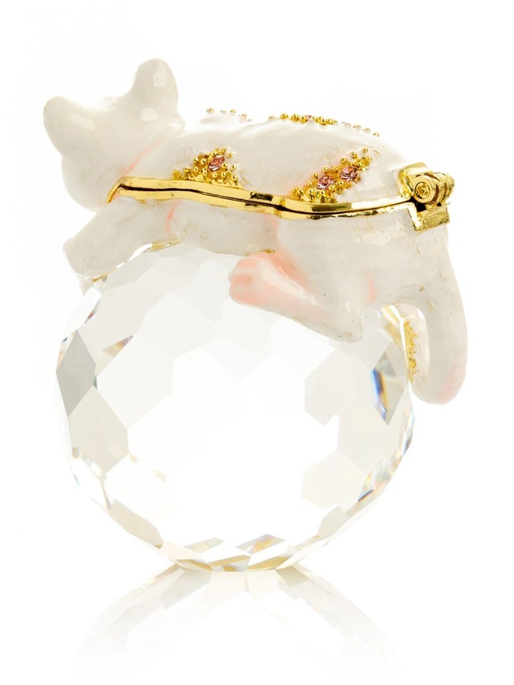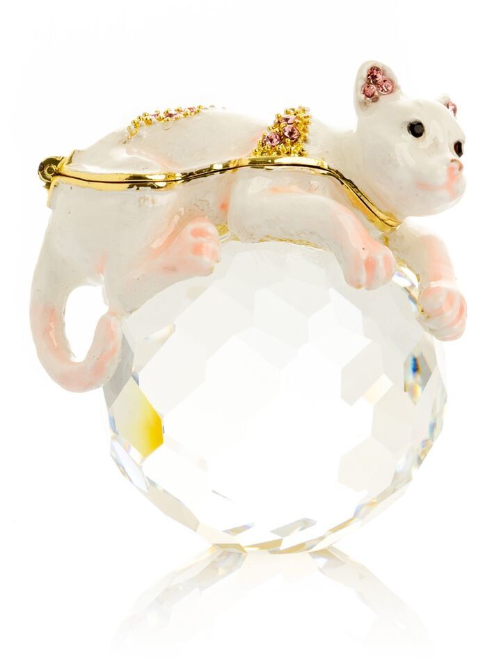 Keren Kopal Cat crystal ball hand made Trinket box Decorated &Austrian Crystals