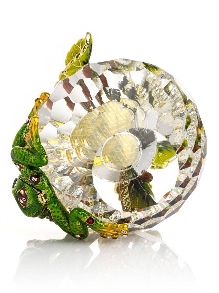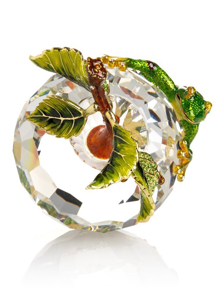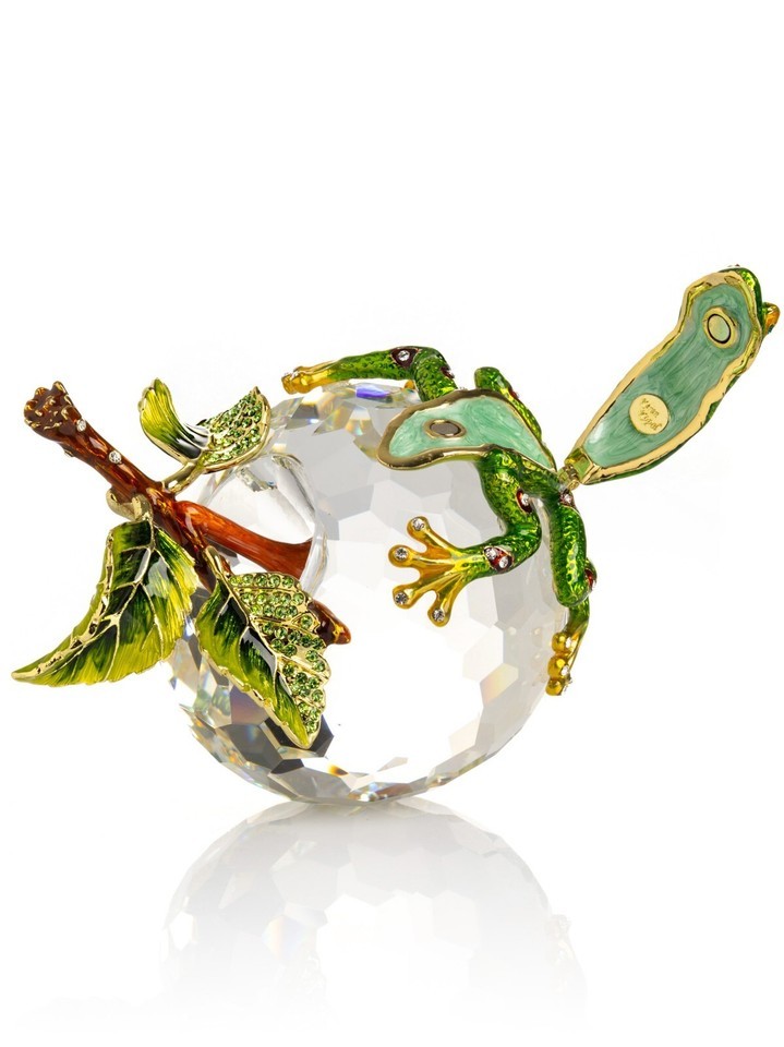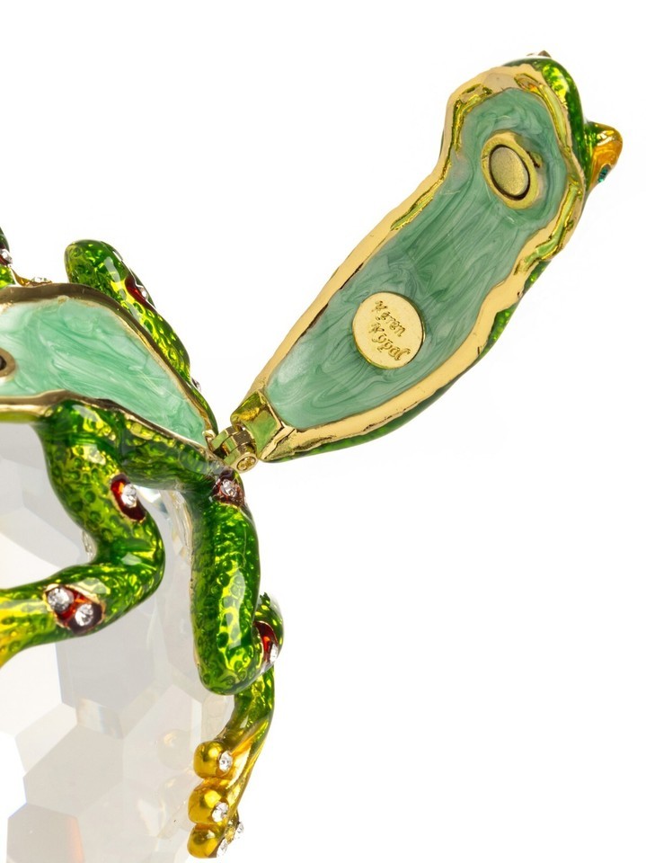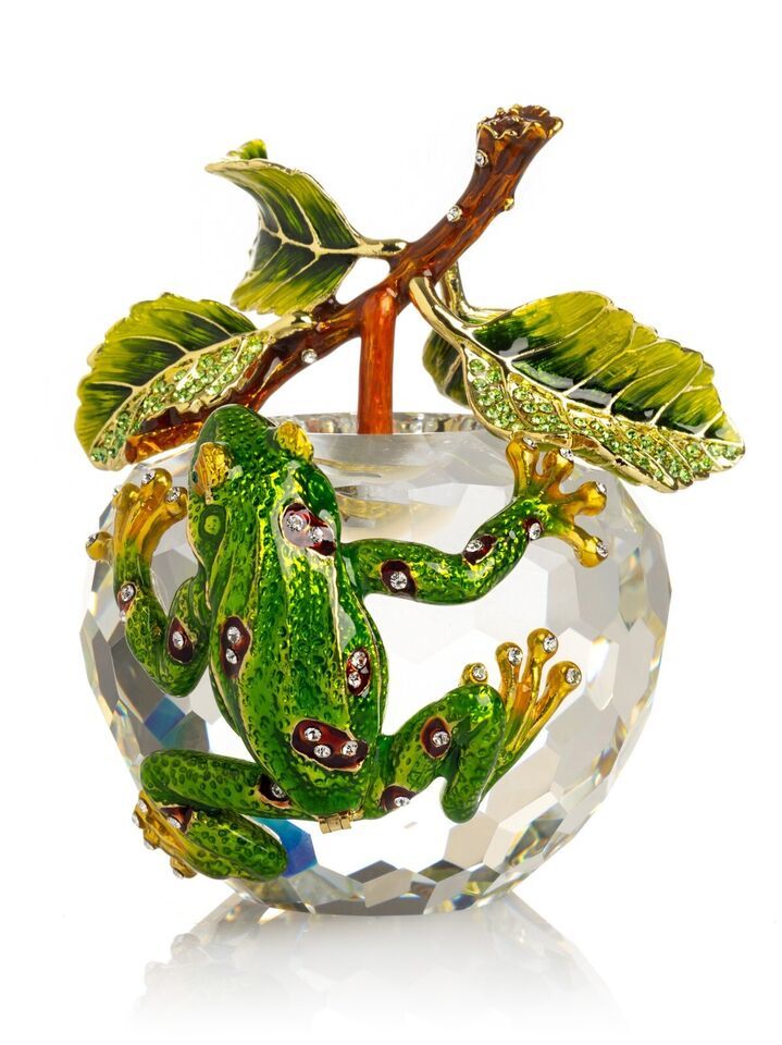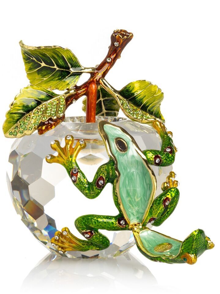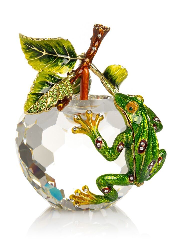 Keren Kopal Green Frog on Crystal Apple Trinket box Decorated &Austrian Crystals