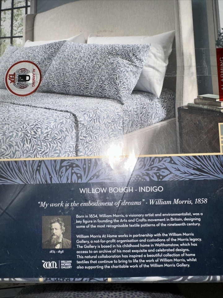 WILLIAM MORRIS WILLOW BOUGH INDIGO 4pc QUEEN SHEET SET NIP Beauitful
