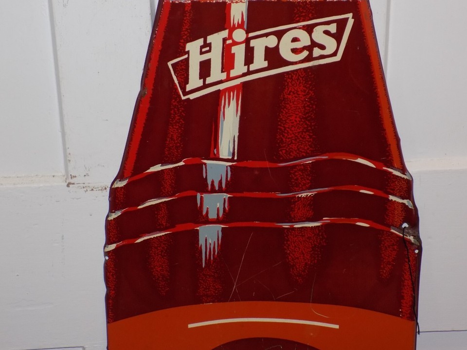 You are buying a Vintage Hires Root Beer Embossed Bottle Tin Sign. It