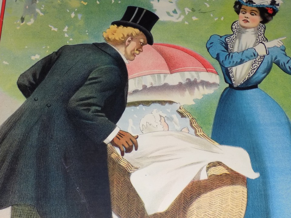 Vintage 1900 Theater Poster of The New Baby Linen Backed