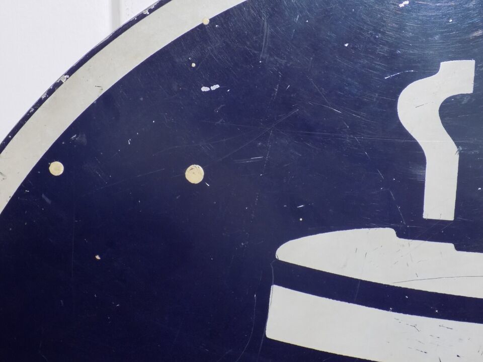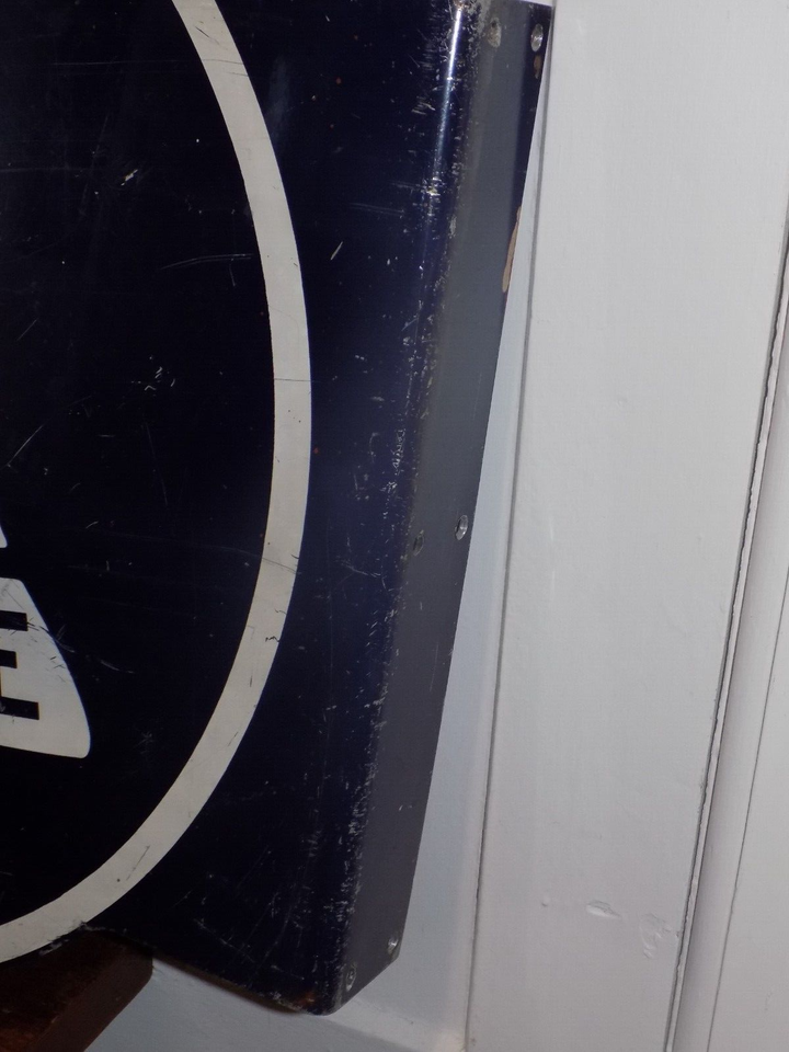 ?s inch flange lip. Weighs 6 pounds 8 ounces. Sign has wear, scuffs, paint