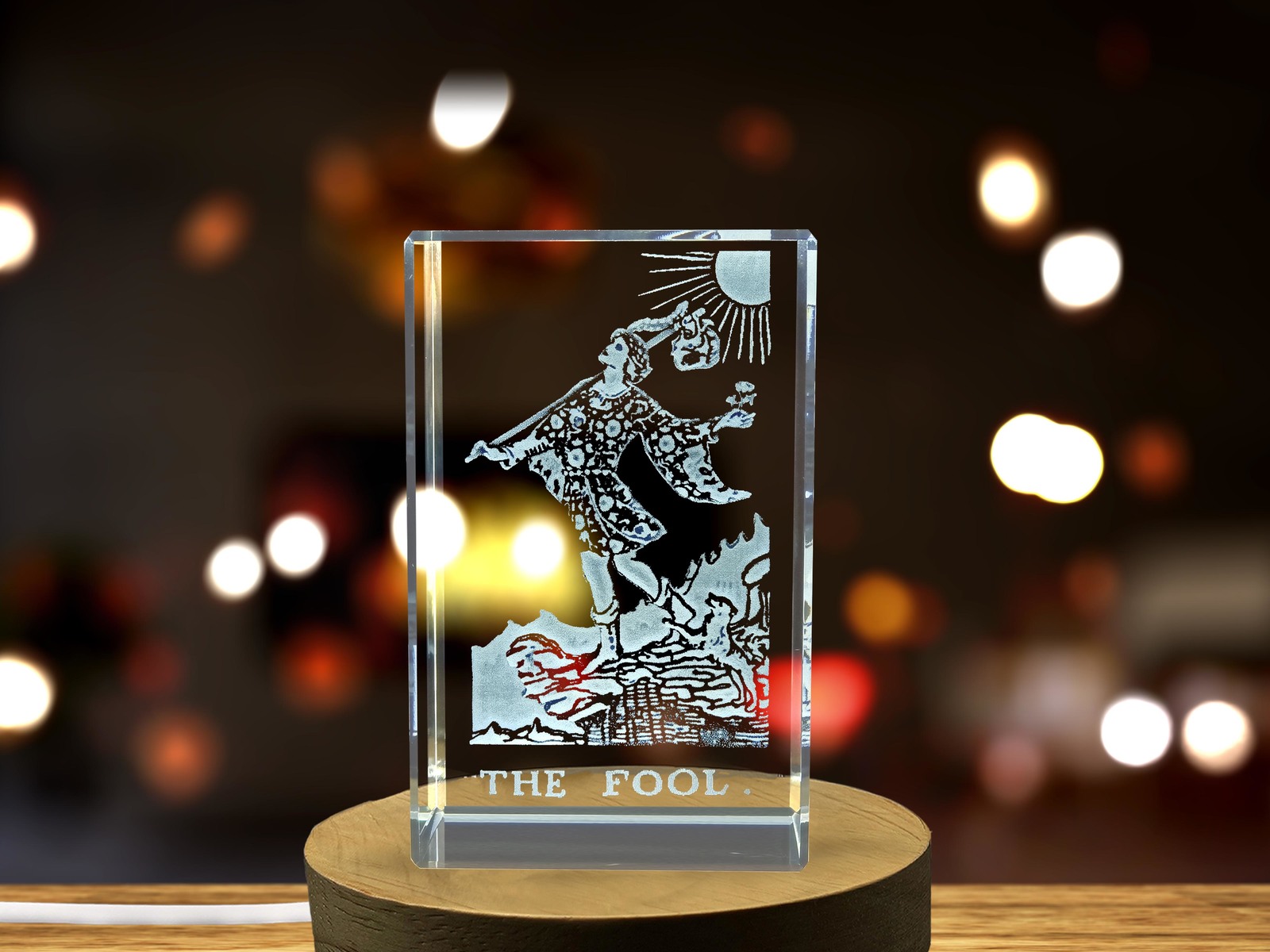 LED Base included | The Fool Tarot Symbol Precisely 3D Engraved crystal
