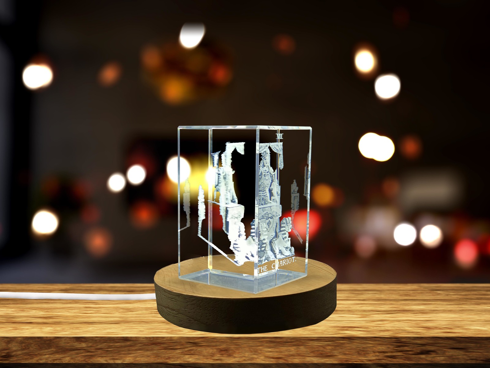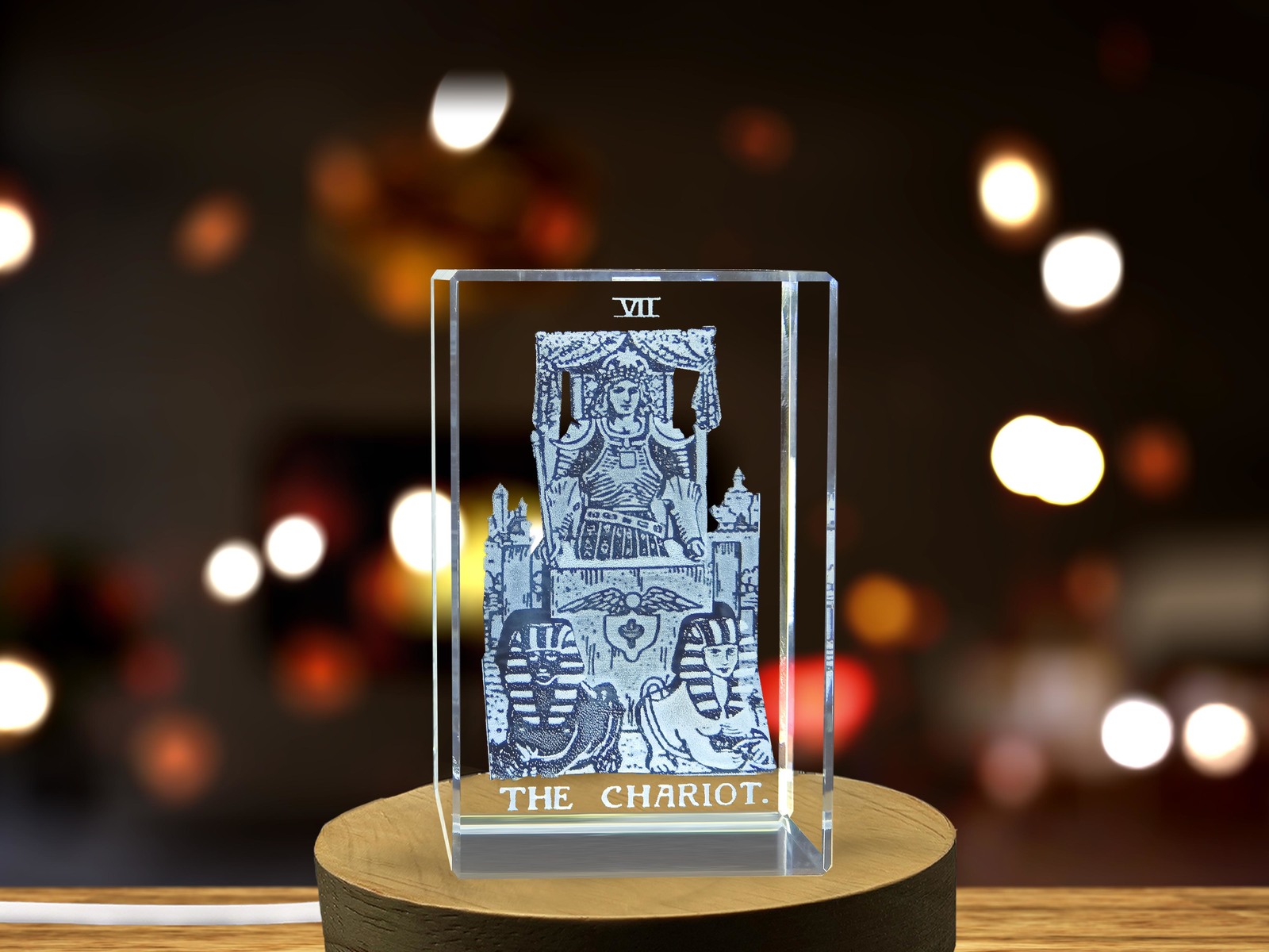 LED Base included | The Chariot Tarot Symbol Masterfully Engraved in Crystal