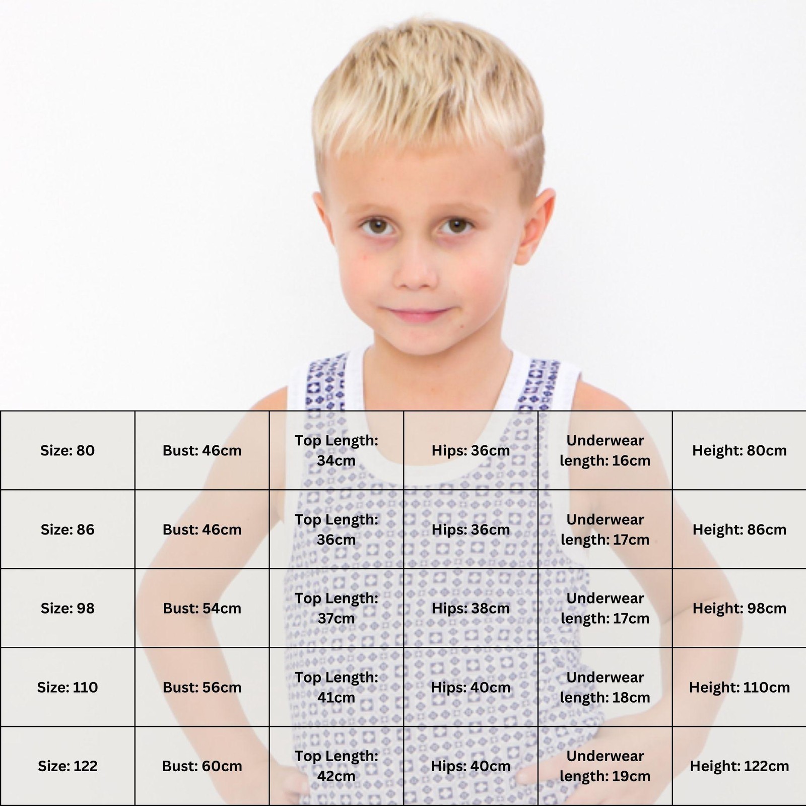 Size: 122, Bust: 60cm, Length: 42cm, Hips: 40cm, Height: 122cm, Shoulders: 30cm, Waist: 58cm, Sleeve: 0cm