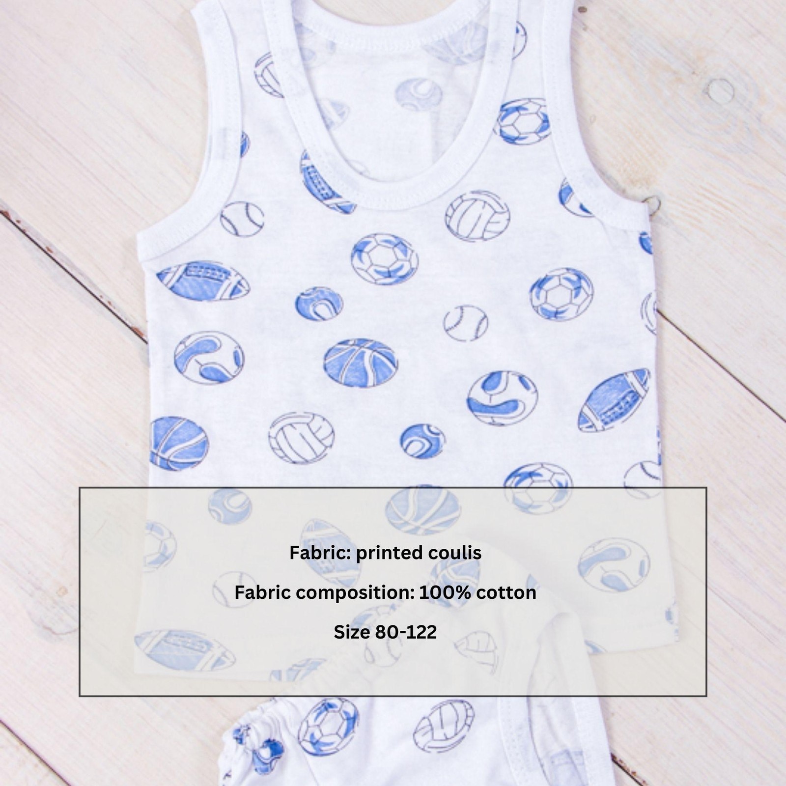 The boys' tank top and briefs set is the perfect choice for everyday comfort and style. The tank top is made from soft, breathable fabric, ensuring comfort and freedom of movement. The briefs complete the set, providing maximum comfort throughout the day. This set is ideal for everyday wear, sports activities, or relaxation. With a variety of colors and a stylish design, the set is a practical and fashionable choice for boys of all ages. Ensure your son?s comfort and style with this excellent set.
