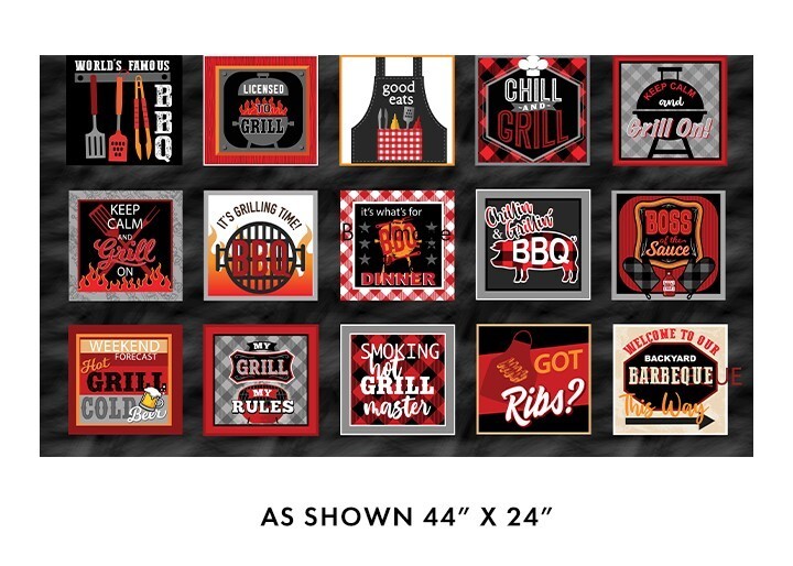 24" X 44" Panel Chillin and Grillin BBQ Grill Food Barbeque Benartex Cotton Fabric Panel (14350-12)