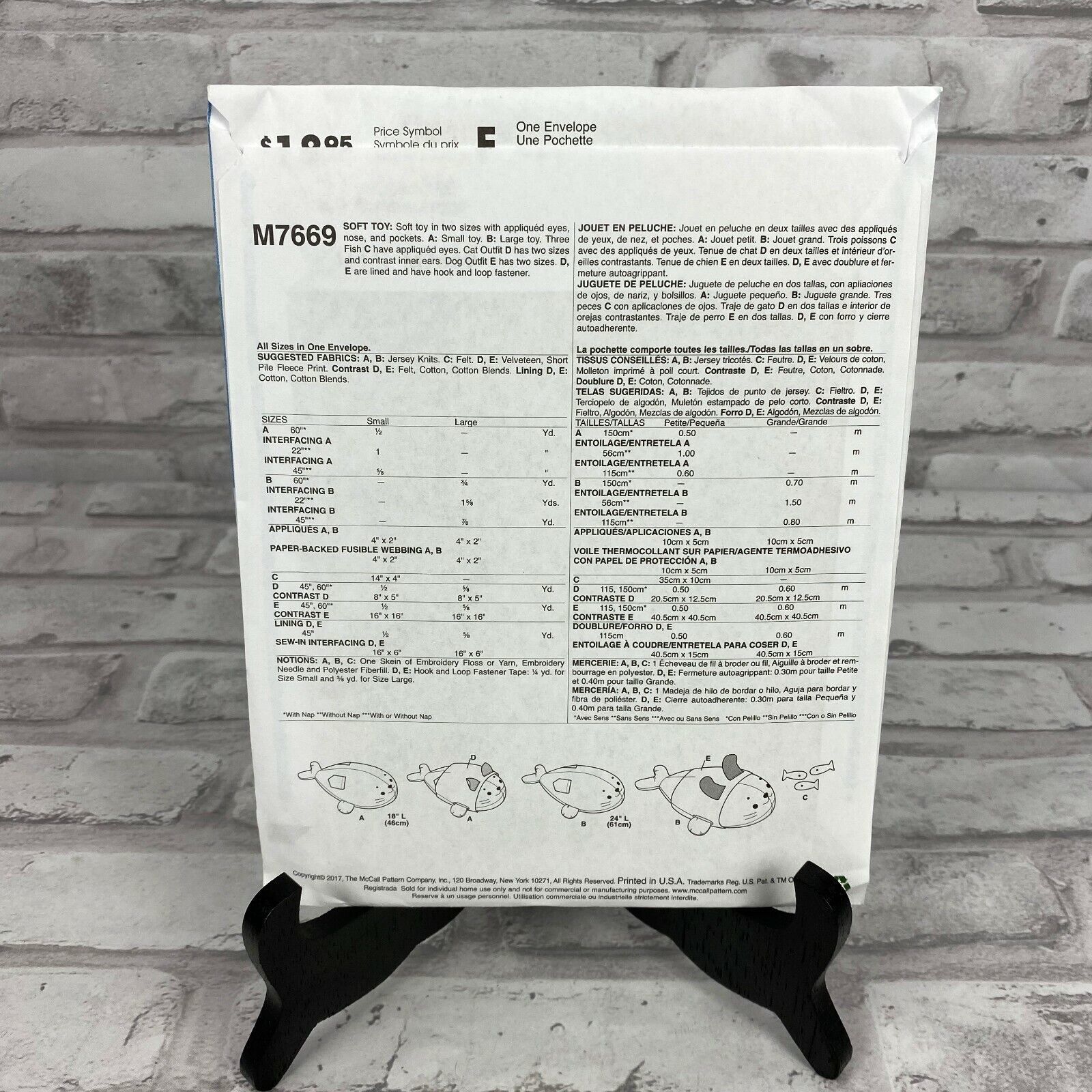 New McCalls Crafts Pattern Soft Toys Fish Softie Doll for Cat Dog M7669