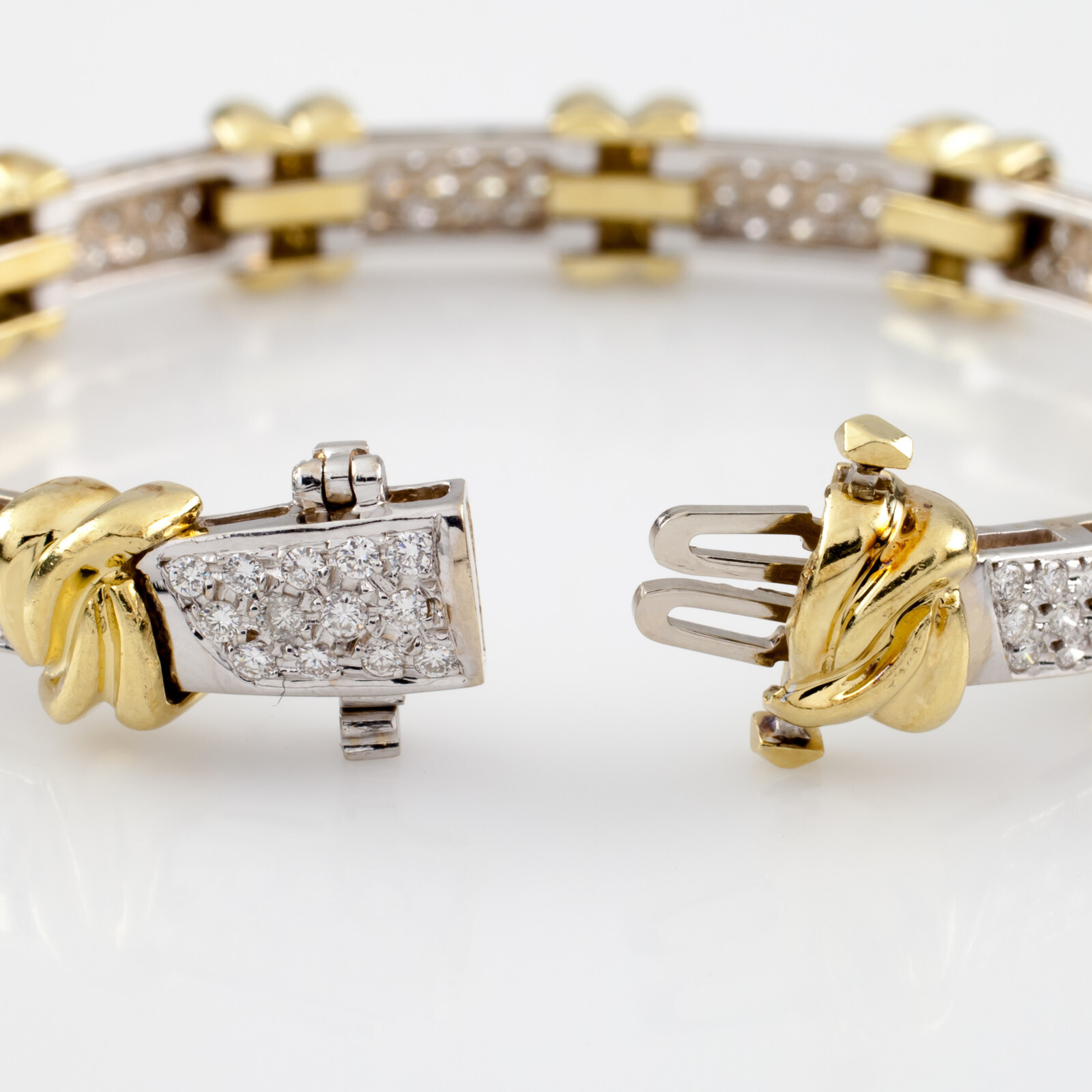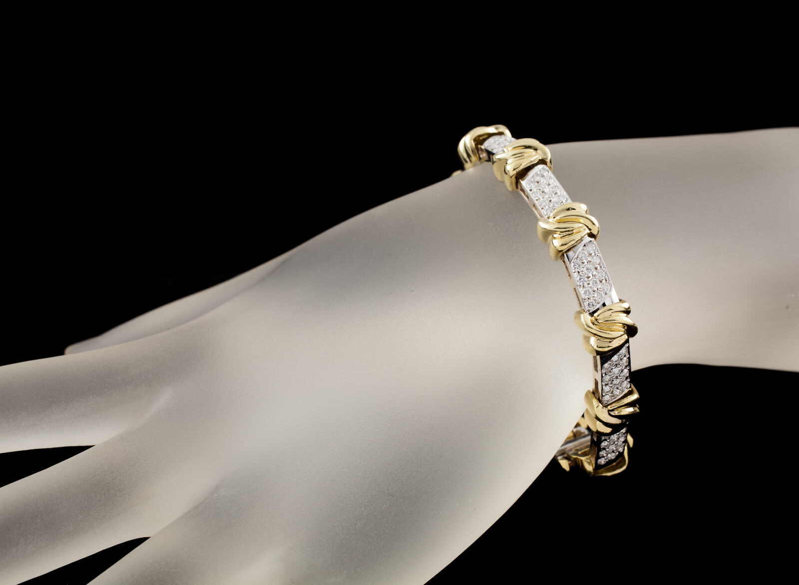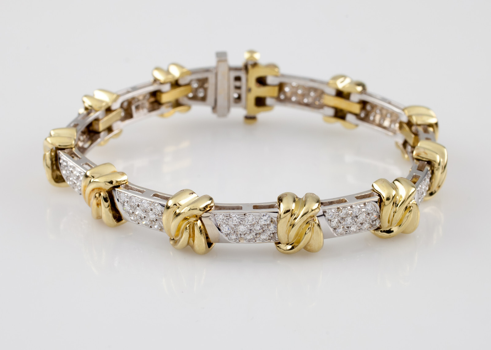 3 carat Diamond Knot Station 18k White Yellow Gold 2-Tone Bracelet 7.25"