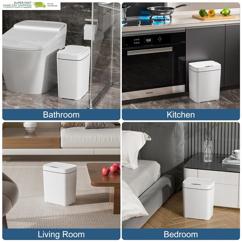 ?WATERPROOF MOISTURE-PROOF? Smart Motion Sensor Garbage Bin with lid is made of high-quality PP material, making it durable and waterproof. With an IPX5 waterproof rating, it is suitable for bathroom splashes. The Garbage Can prevents water from entering, making it easier to clean.
