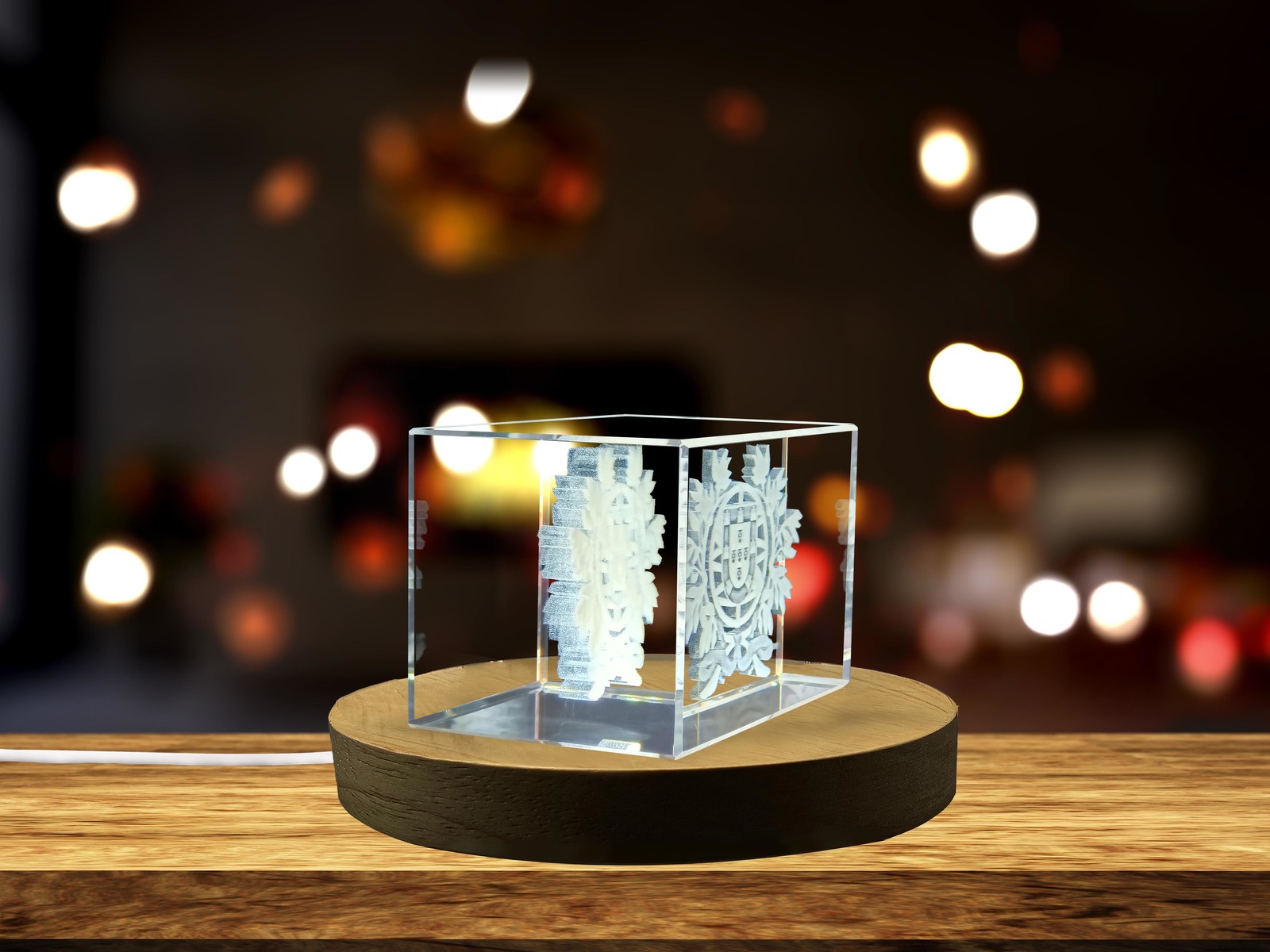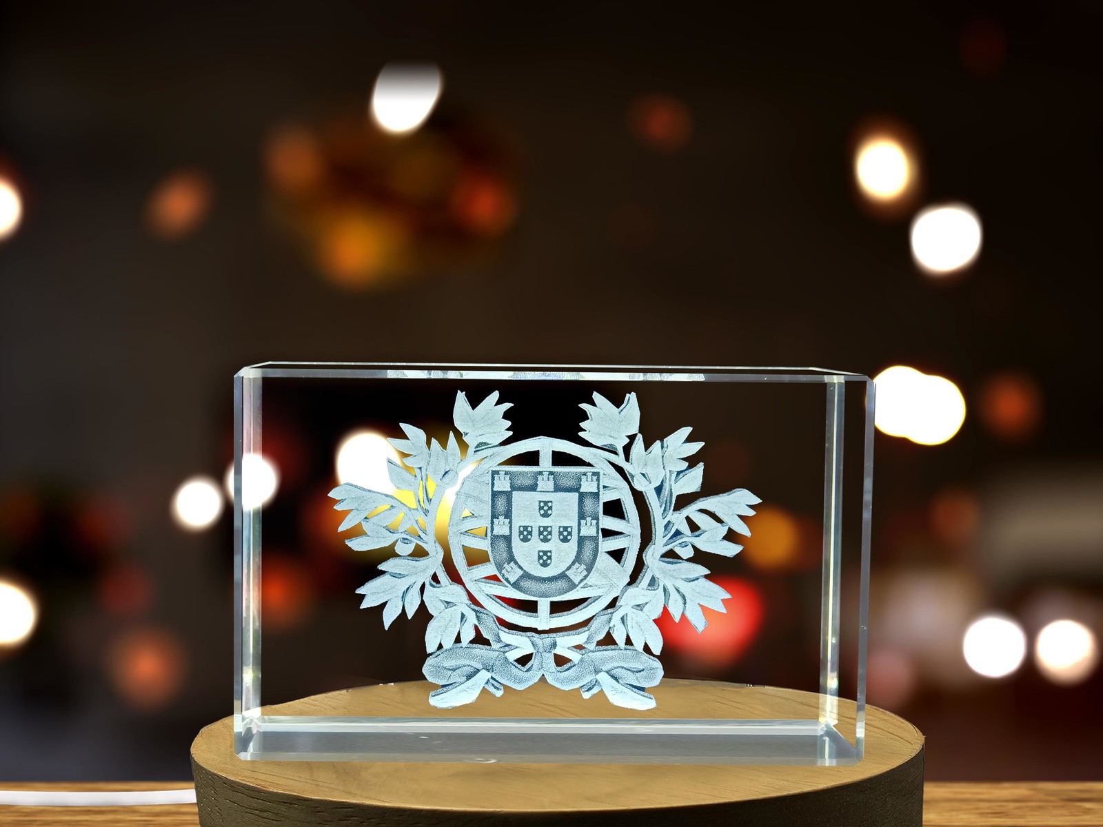 LED Base included | Portugal National Emblem 3D Engraved Crystal Gift