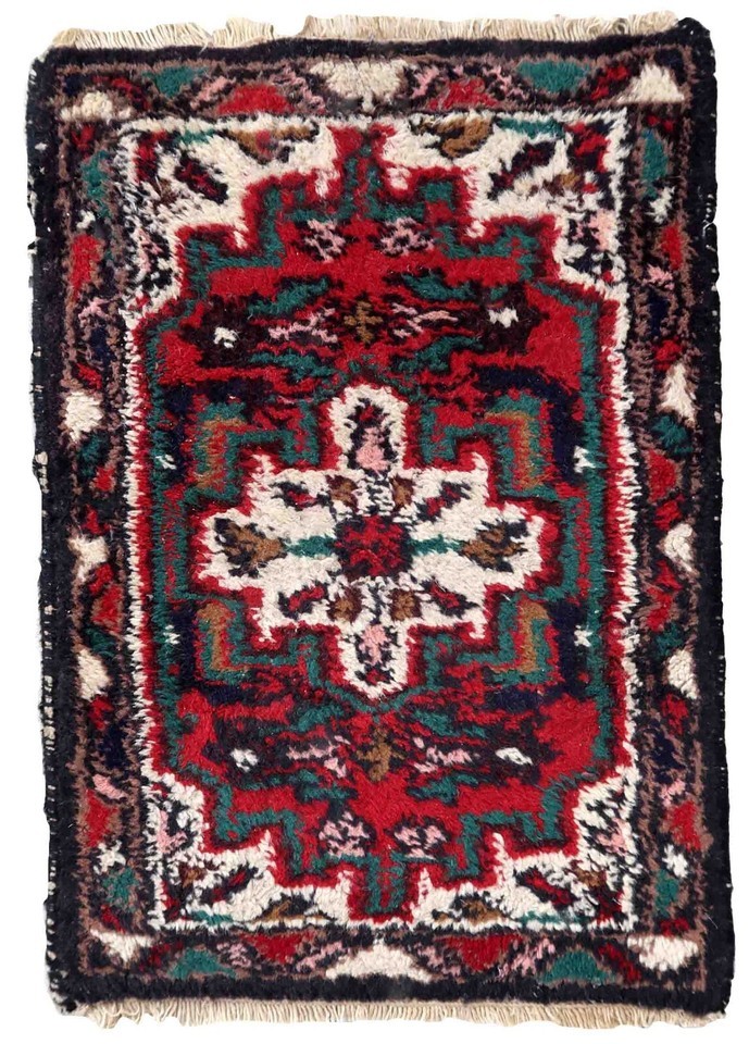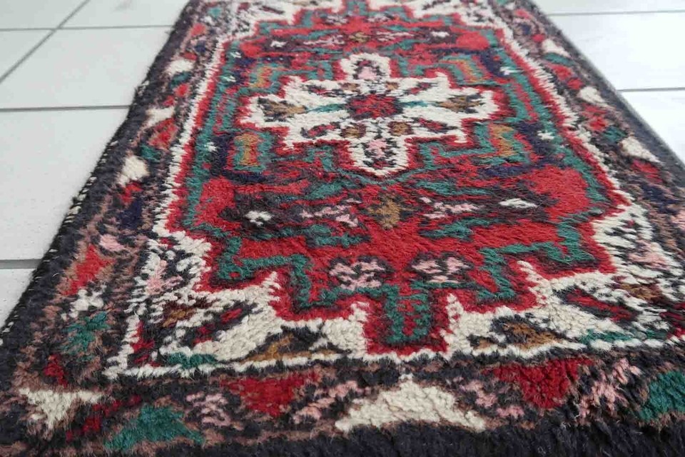 Alfombra anejo Oriental hecho a mano 43cm x 63cm 1970s - 1C959