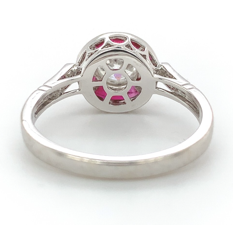 14k White Gold .80ct European Cut Genuine Natural Diamond Ring Ruby Halo #J7265