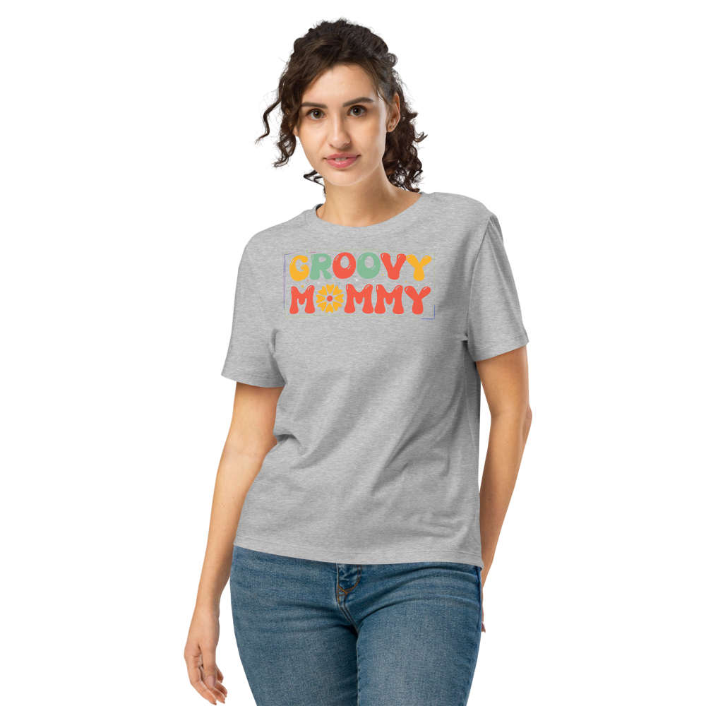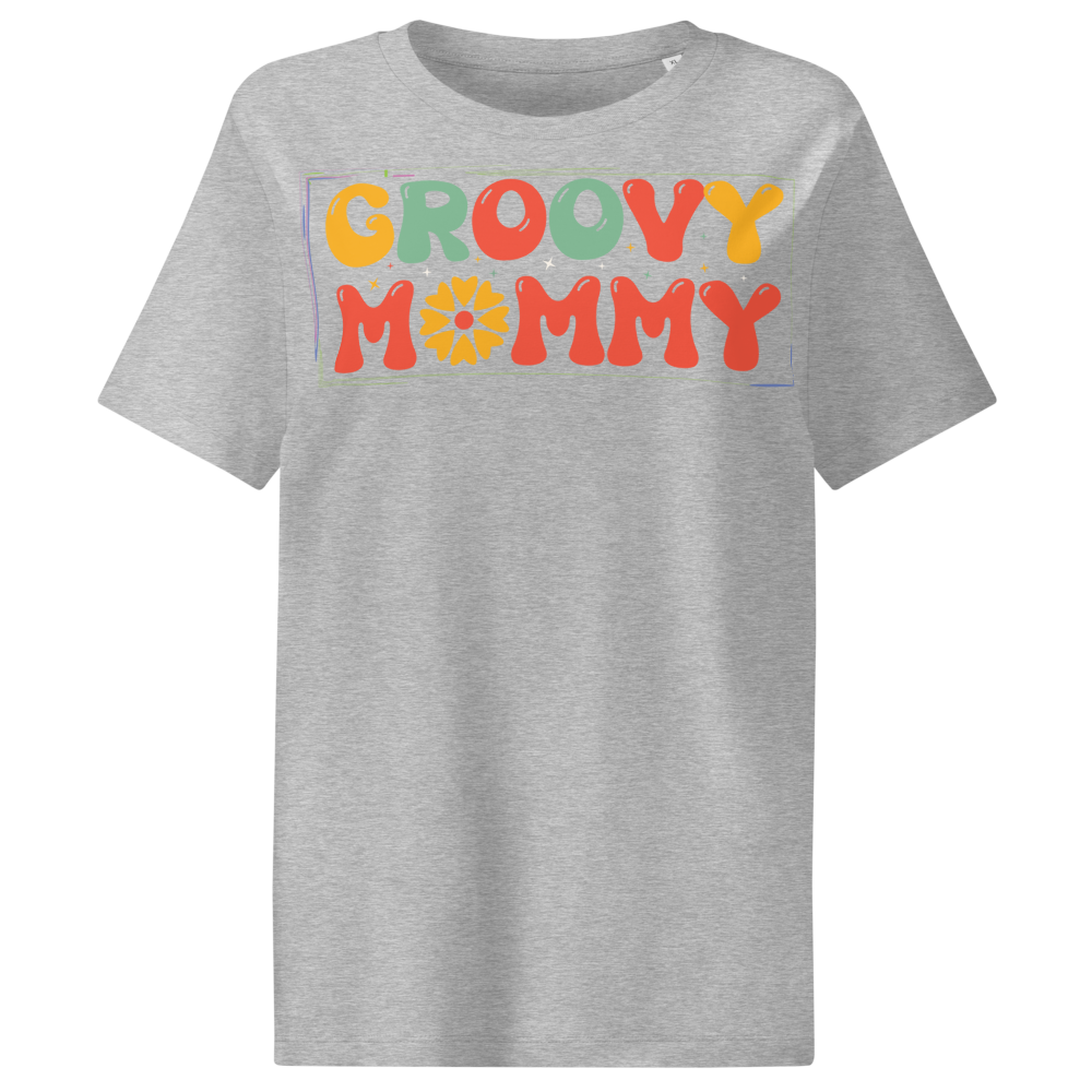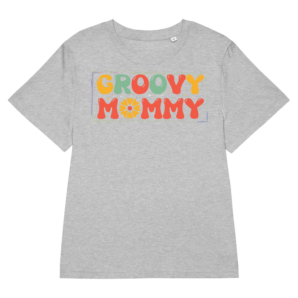 Women’s Organic Ribbed Neck T-Shirt – Groovy Mommy (Heather Grey)