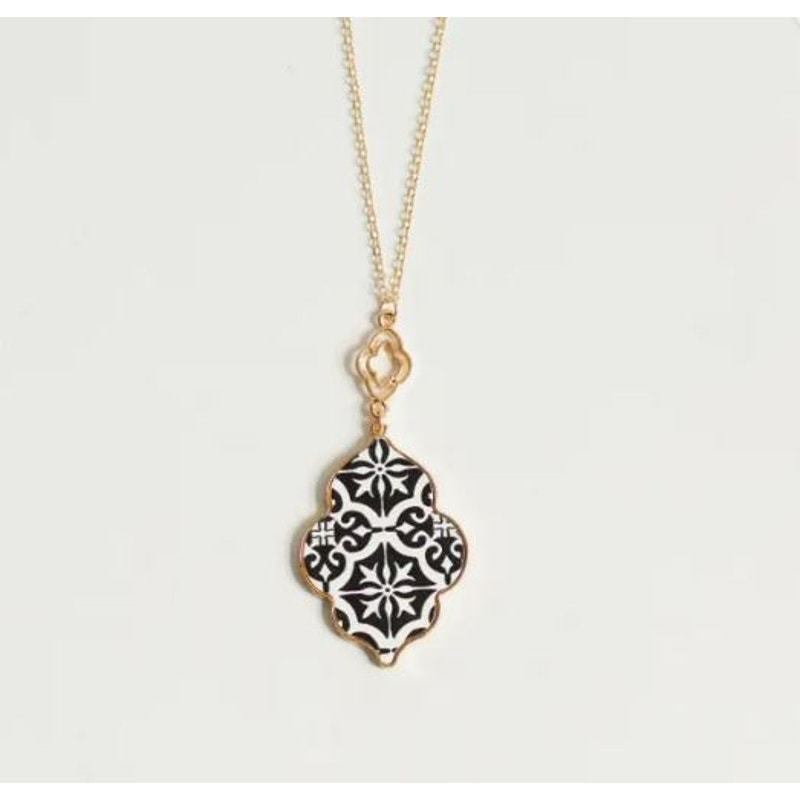 Black & White Mosaic Long Pendant Statement and 49 similar items