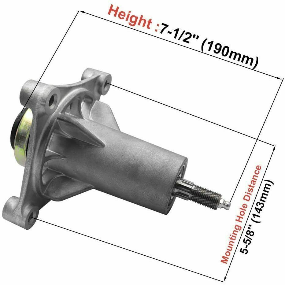 ?Well-Built?Length 7-1/2"(20cm). Blade mound: 5 point star shaped. The replacement part is made of high quality aluminum alloy, durable and corrosion resistant. Includes Top Nut, spindle assemblies, blade bolts kit, Mounting Bolts grease zerk, pulley locknuts, spacer.