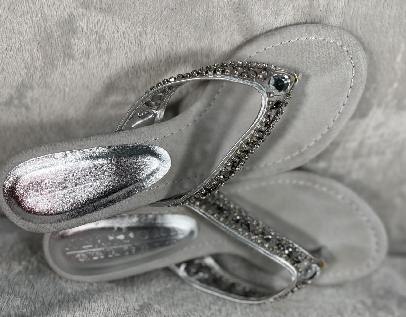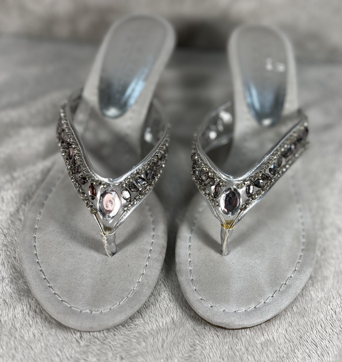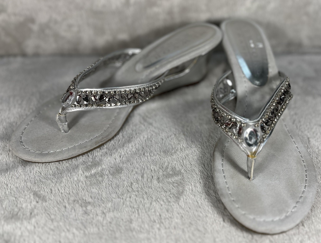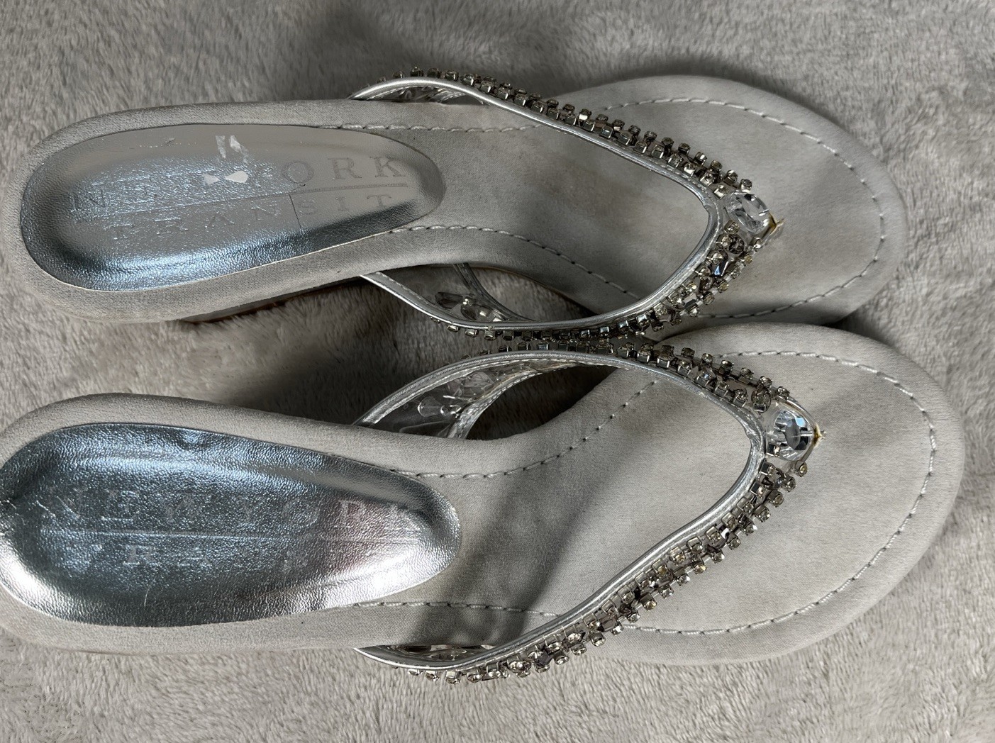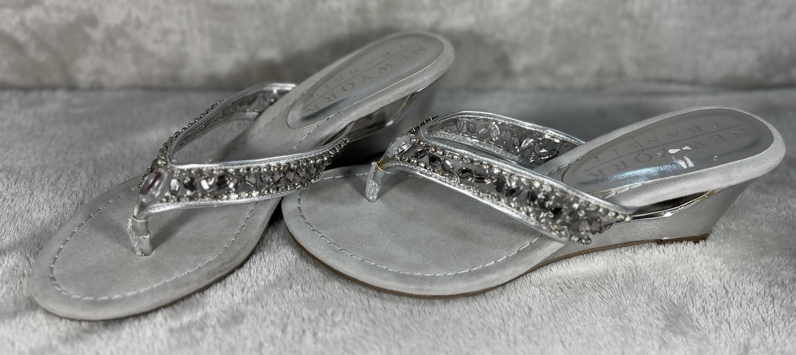 New York Transit Shoes Sandals Wedge Heel Silver Rhinestones Womens Size 8.5M