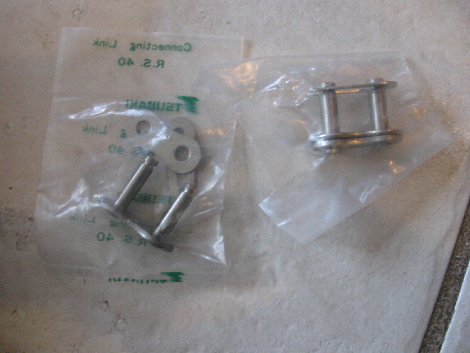 NOUVEAU LOT de 10 TSUBAKI KIT de maillons de chaîne de connexion 5/8" ref. - RS40SS RS 40 en acier inoxydable (ceux-ci mesurent environ 5/8" de large, peut-etre un peu plus longs - etrange) Je ne comprends pas le systeme de numerotation de ces chaînes. J'espere que vous le pourrez. Tout cela est nouveau et genial. Il s'agit d'un excellent kit de remplacement de chaîne. Nouveau en pack. les packs peuvent etre poussiereux ou abîmes, mais l'unite est neuve. De la vente de surplus de stock d?une grande entreprise. Nous ne sommes pas des experts en la matiere, mais pouvons repondre a vos questions si vous en avez. NAVIRE GRATUIT AUX ETATS-UNIS. Expediera a l?international. Contactez-nous pour connaître le prix, car nous beneficions de tres bons tarifs a l?etranger.