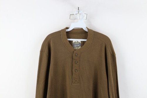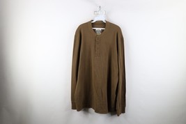 Vtg Eddie Bauer Mens XLT Faded Blank Thermal Waffle Knit Henley T-Shirt Breen