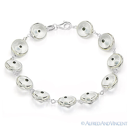 Evil Eye Glass Bead 10mm Bezel Bracelet in .925 Sterling Silver - Clear Colors