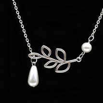 PEARL AND LEAF BRANCH NECKLACE Hanging Charm Silver Tone Chain NEW Bridesmaid